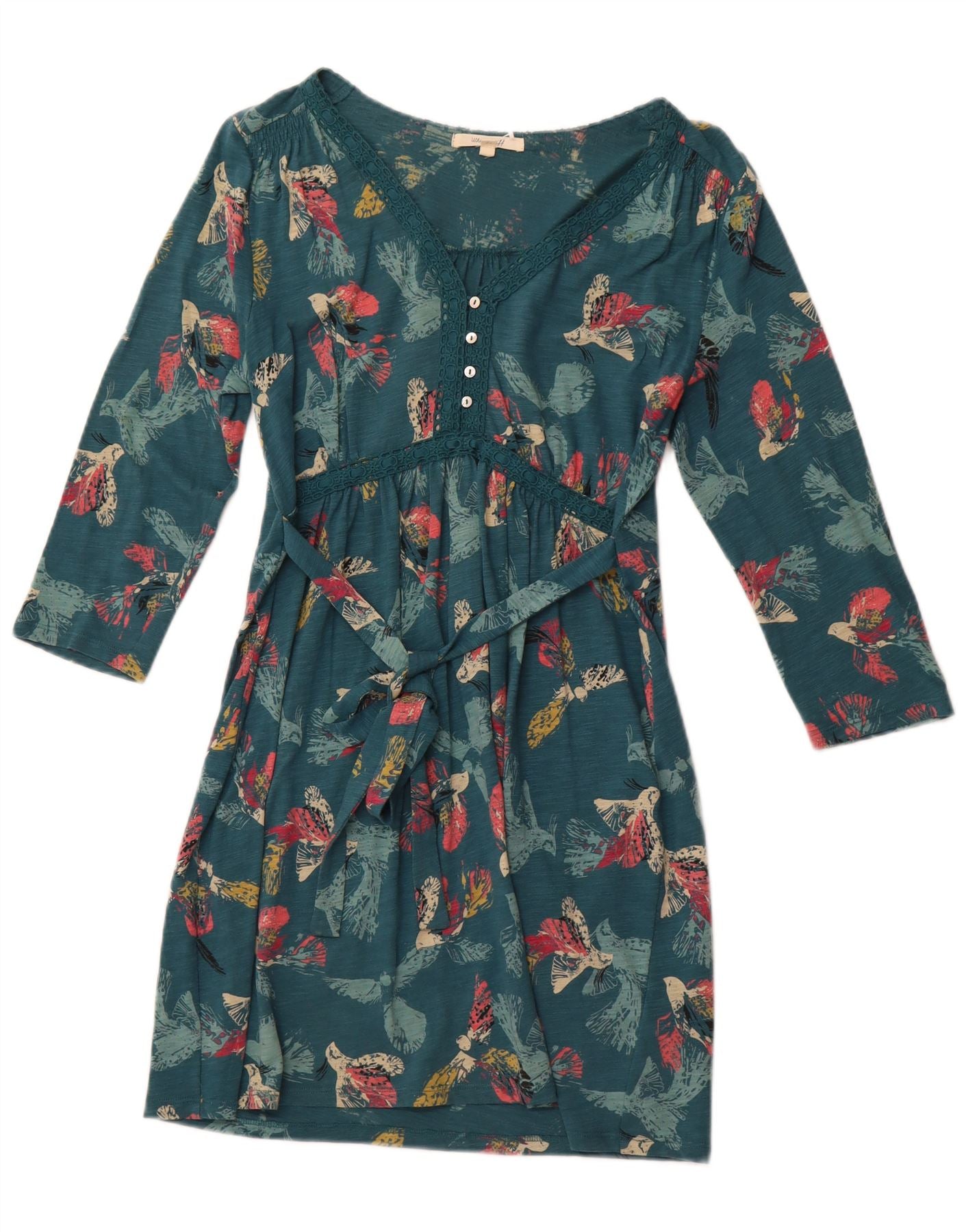 WHITE STUFF Womens Graphic 3/4 Sleeve Sheath Dress UK 12 Medium Green