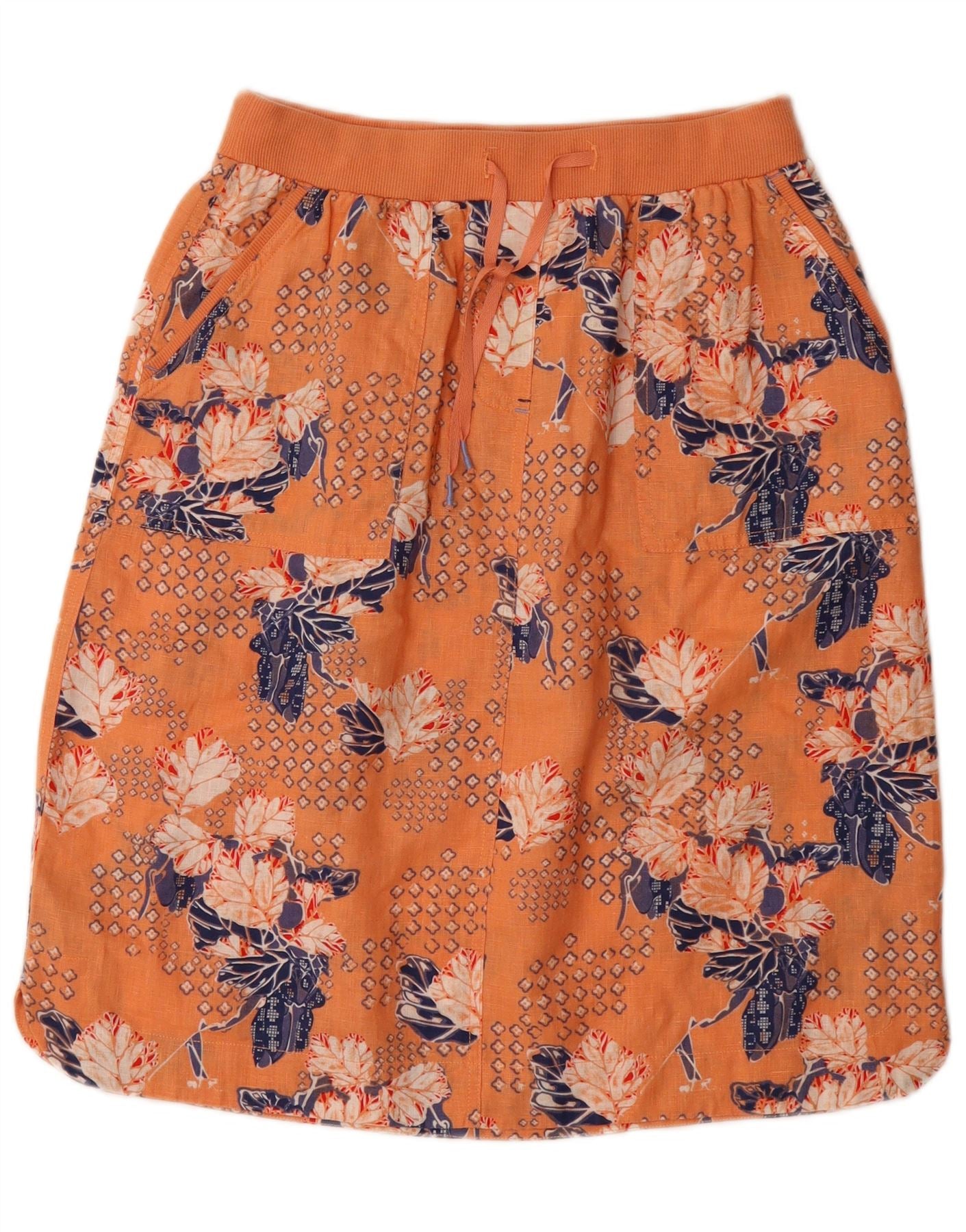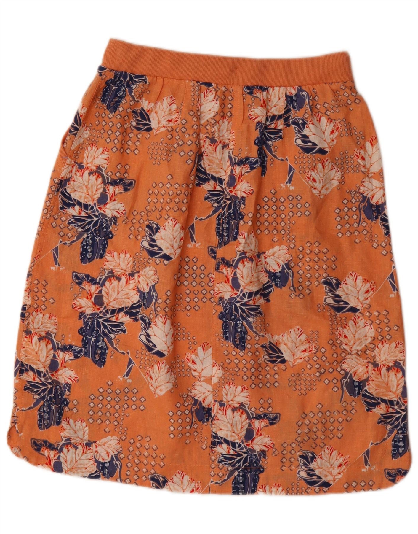 WHITE STUFF Womens Midi Skirt UK 8 Small W26 Orange Floral Linen