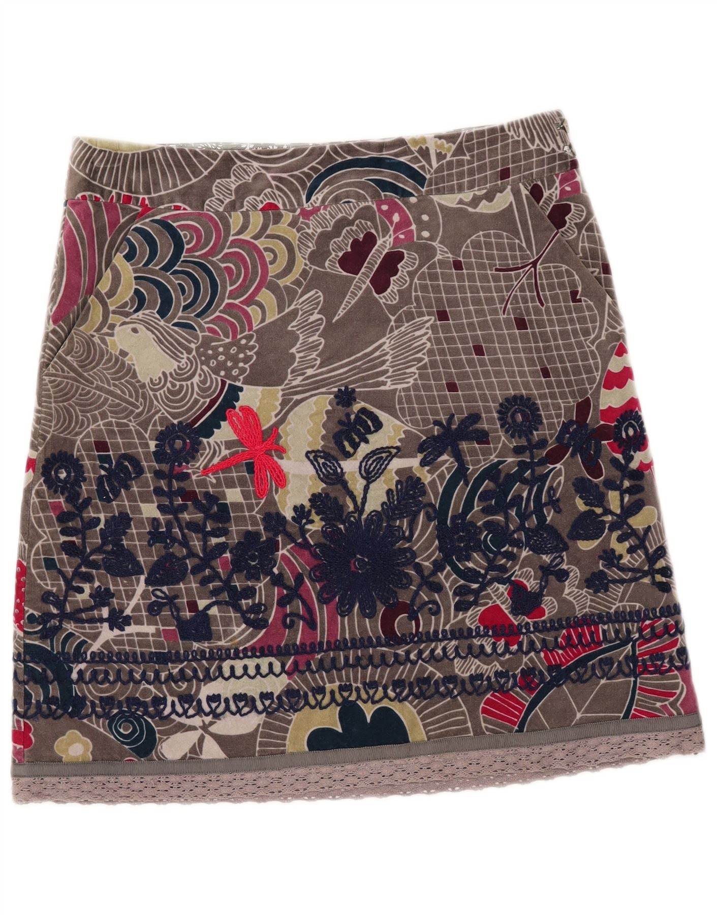 Damska aksamitna mini spódniczka White Stuff UK 12 Medium W33 Szara bawełna w kwiaty
