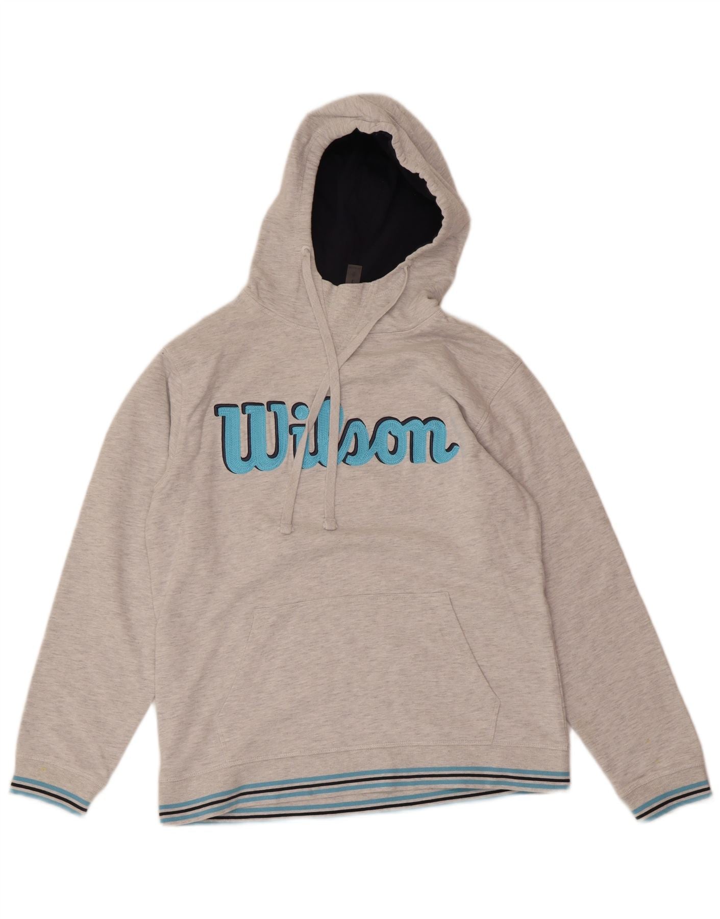 Męski sweter z kapturem i grafiką WILSON, duży, szary, z bawełny w cętki