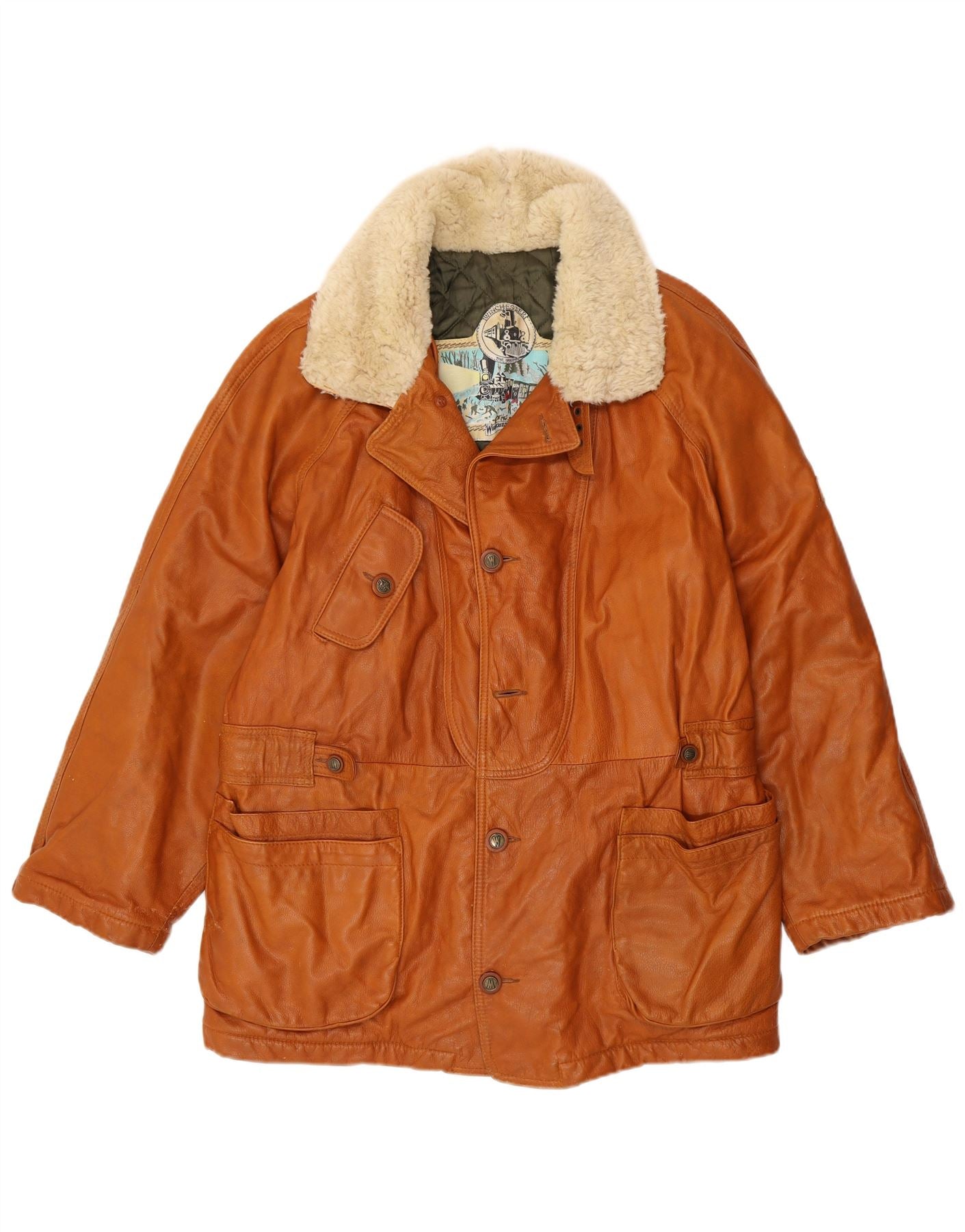 VINTAGE Womens Leather Coat UK 14 Medium Brown