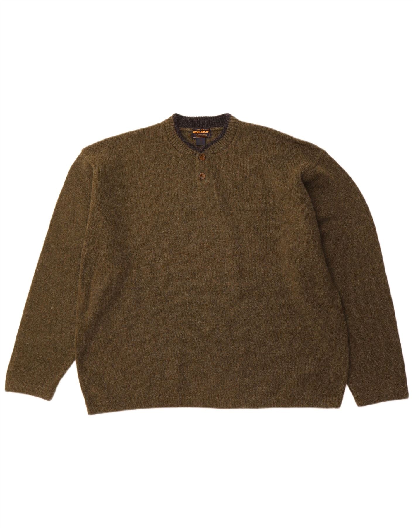WOOLRICH Męski sweter zapinany na guziki, 2XL, wełna khaki