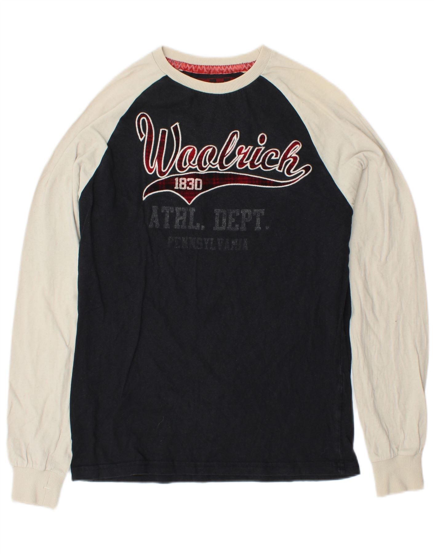 WOOLRICH Mens Graphic Top Long Sleeve Medium Navy Blue Colourblock
