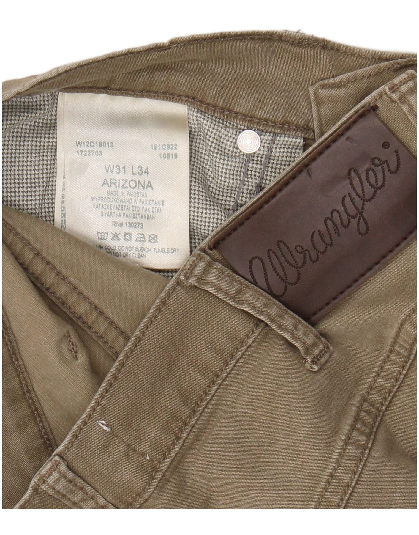 Męskie proste spodnie typu casual WRANGLER Arizona W31 L34 Khaki, bawełna