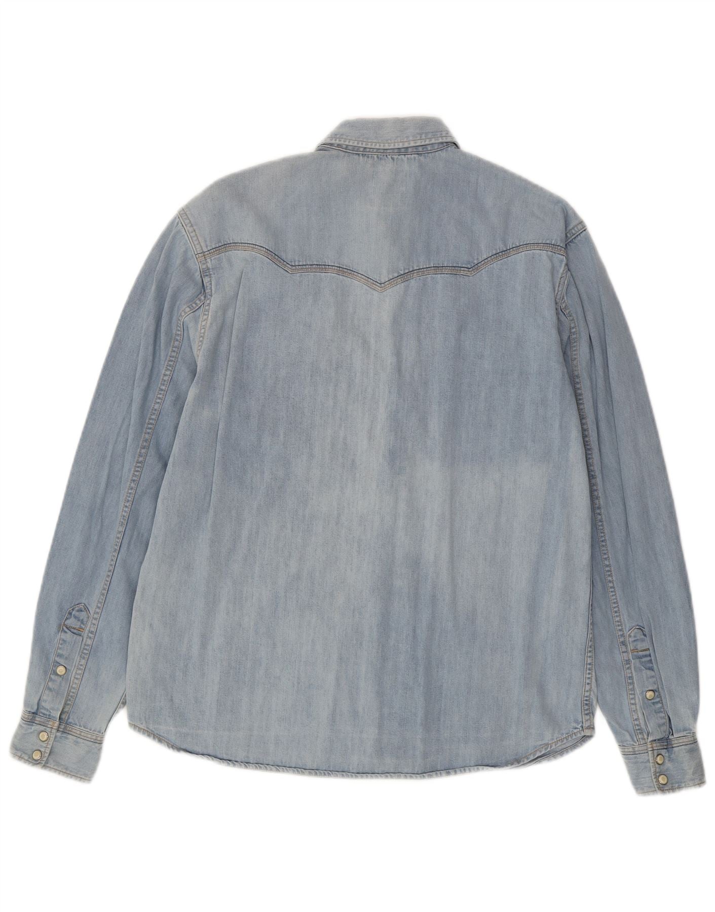WRANGLER Męska koszula dżinsowa na co dzień, mała, niebieska, bawełniana