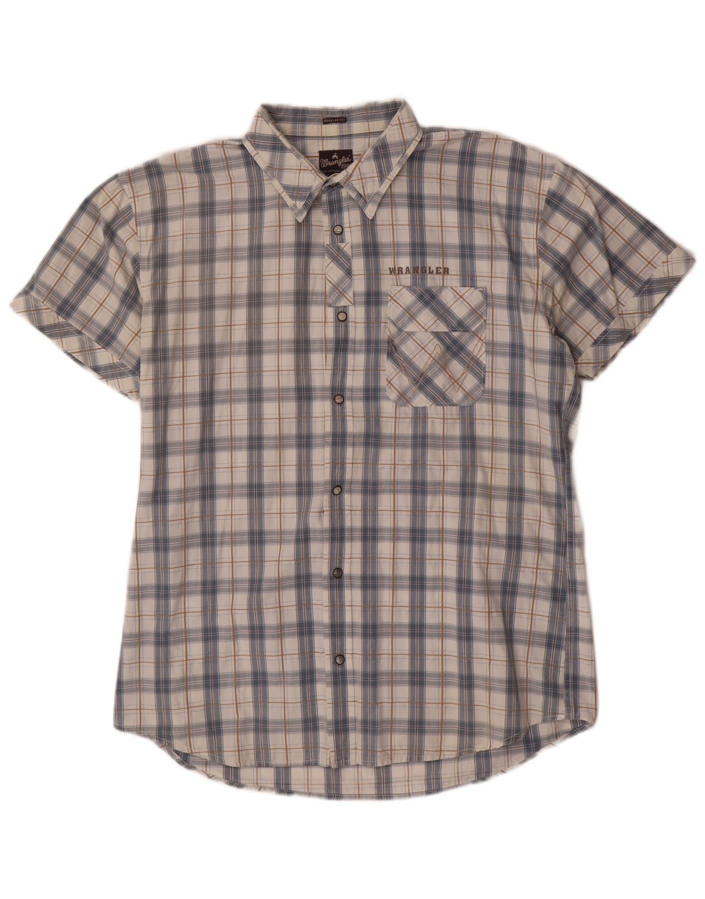WRANGLER Męska koszula z krótkim rękawem o regularnym kroju XL, szara, bawełniana w kratkę