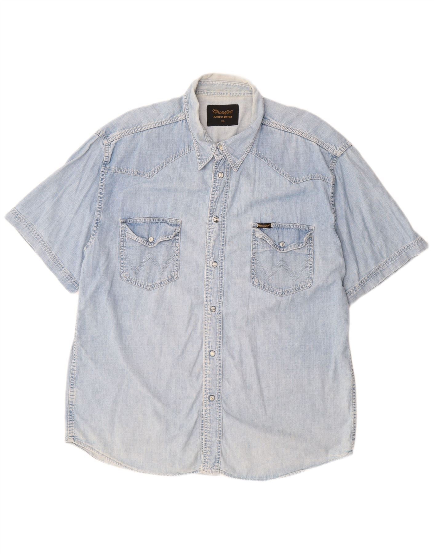 Męska koszula dżinsowa z krótkim rękawem WRANGLER 2XL niebieska