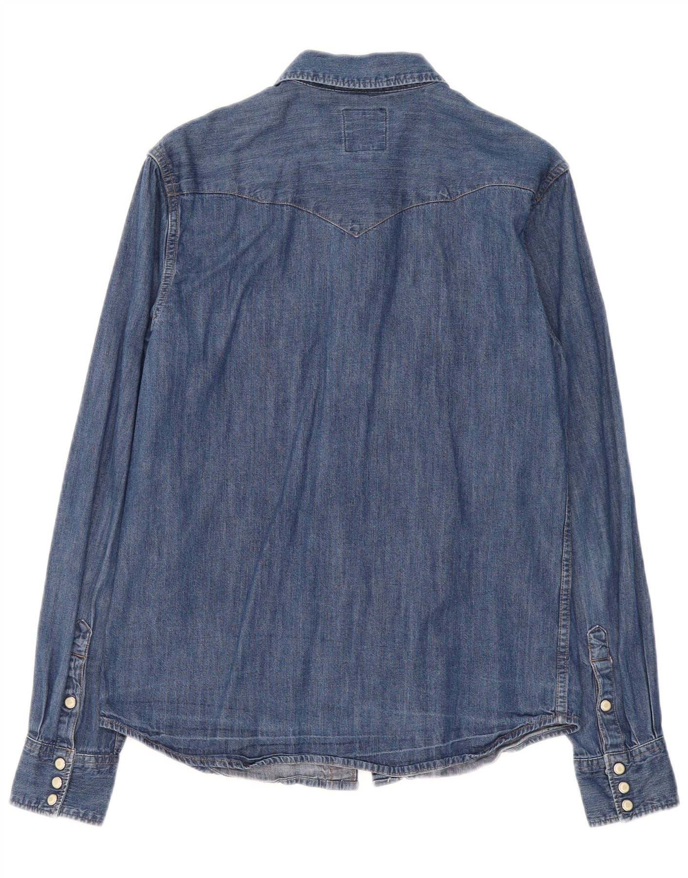 WRANGLER Męska koszula dżinsowa typu slim, mała, niebieska, bawełniana