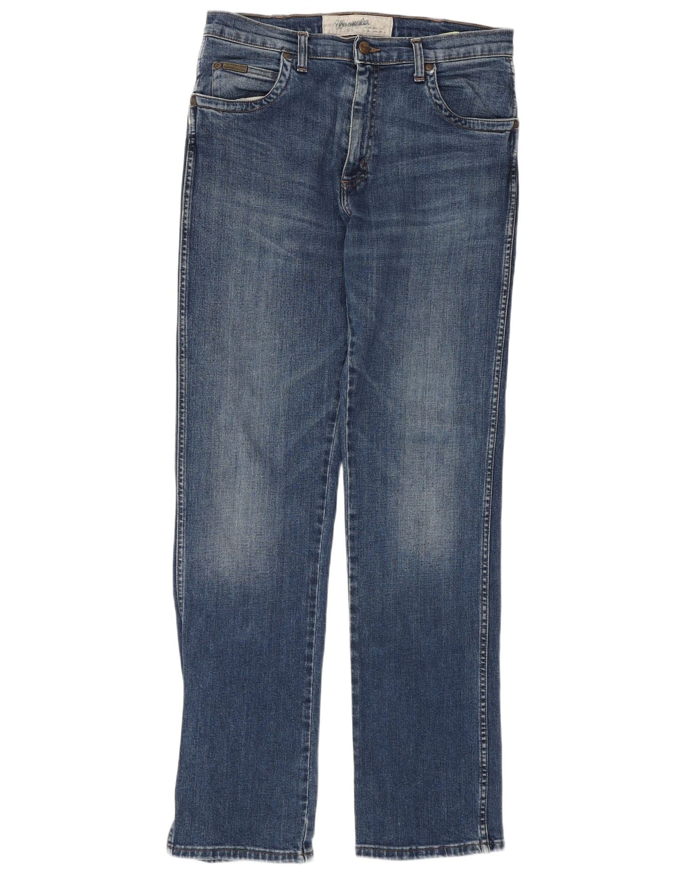WRANGLER Męskie proste dżinsy W32 L33 Niebieskie, bawełniane