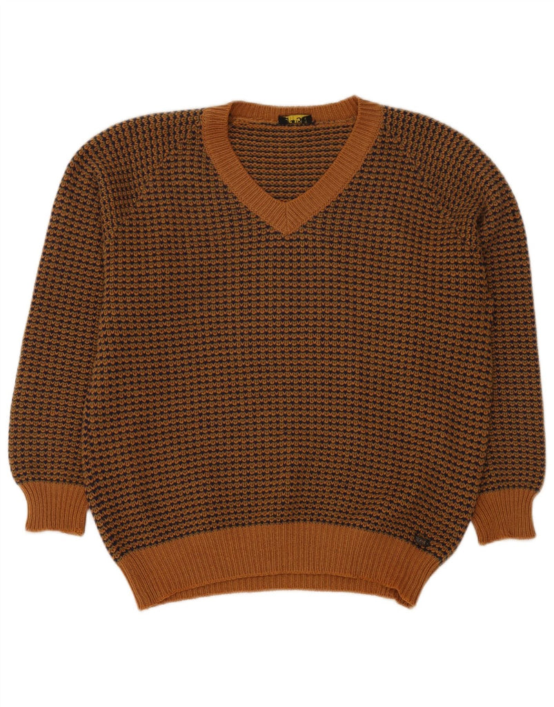 WRANGLER Damski sweter z dekoltem w kształcie litery V, UK 18 XL, wełniany w brązowe paski