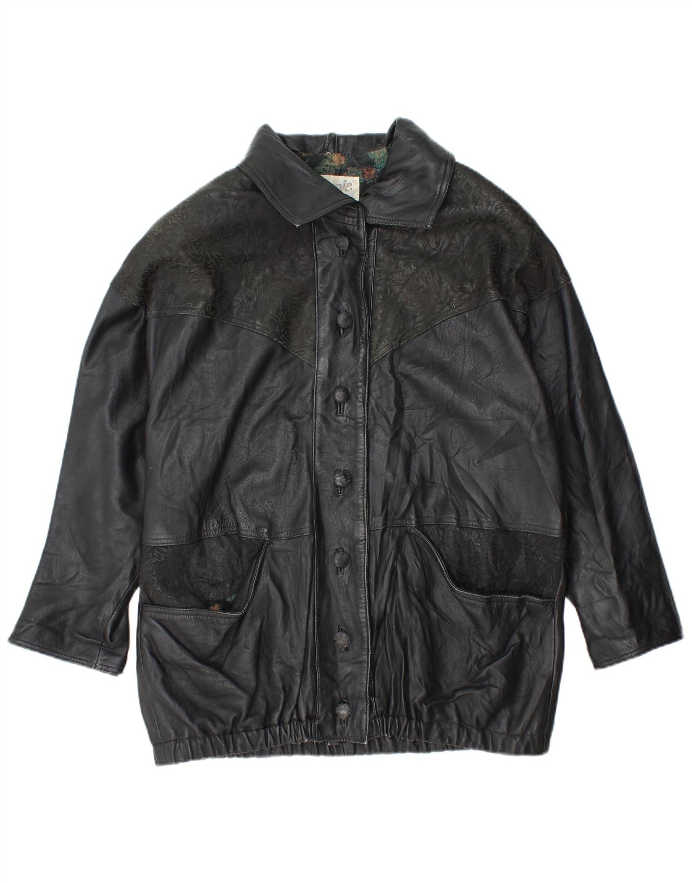 Damska kurtka skórzana oversize YUPPIE UK 18 XL w kolorze czarnym w kwiaty