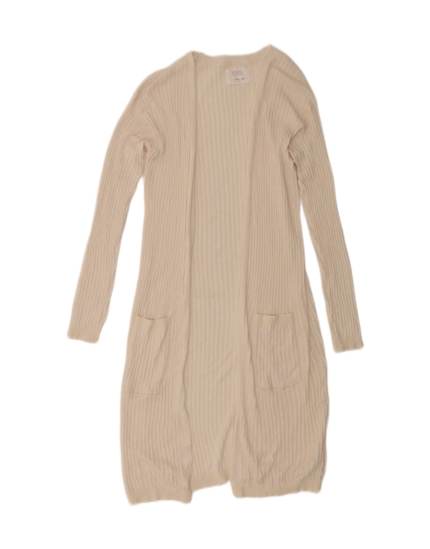 Sweter dziewczęcy o przedłużonym fasonie Zara 13-14 lat beżowy poliester