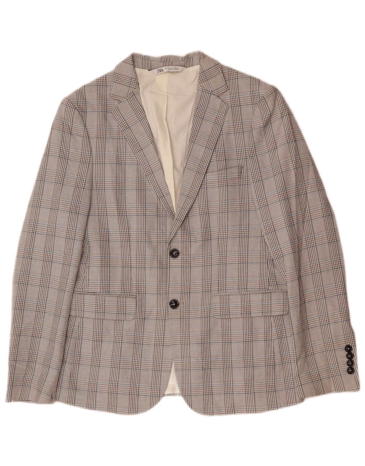 Męska marynarka ZARA zapinana na 2 guziki EU 48 Średnioszary poliester w pepitkę