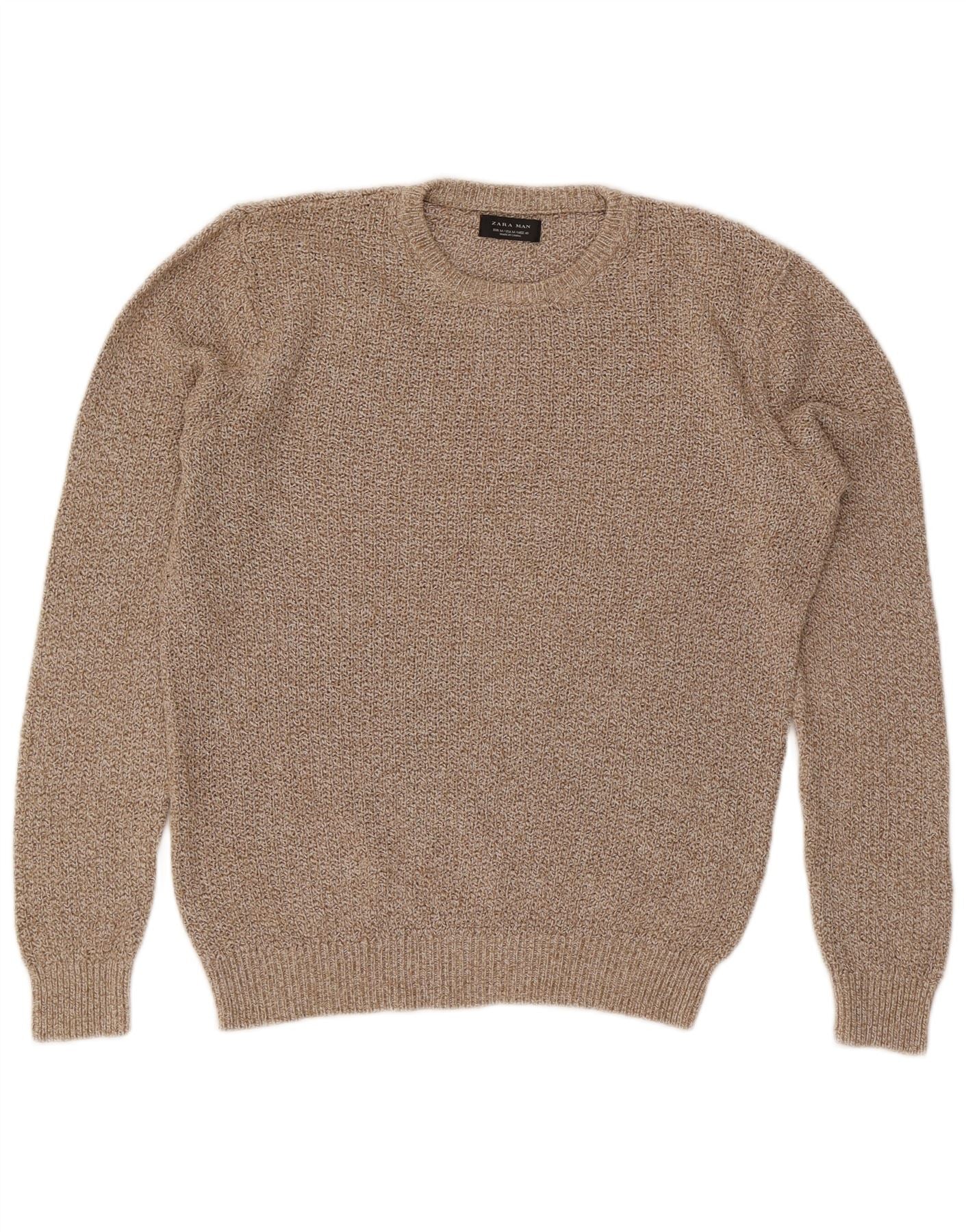 Męski sweter Zara z okrągłym dekoltem, średnio beżowy, nakrapiany