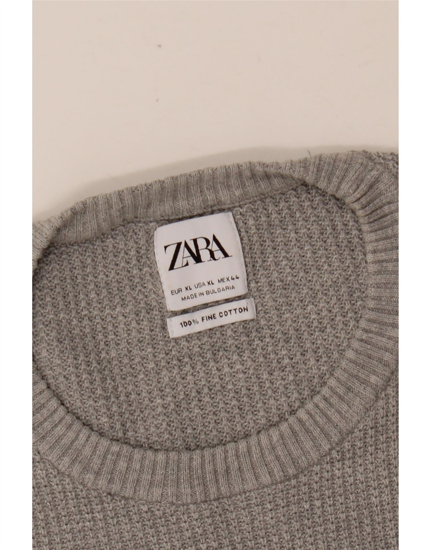 Męski sweter z okrągłym dekoltem ZARA XL, szary, bawełniany