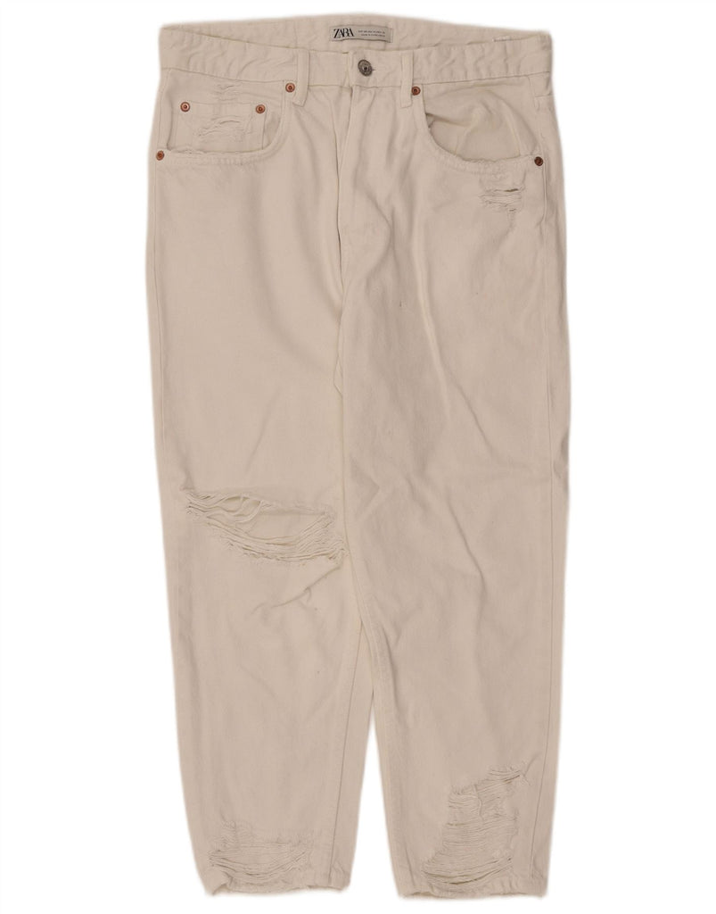 ZARA Mens Distressed Cropped Jeans EU 40 Medium W31 L24 White Cotton