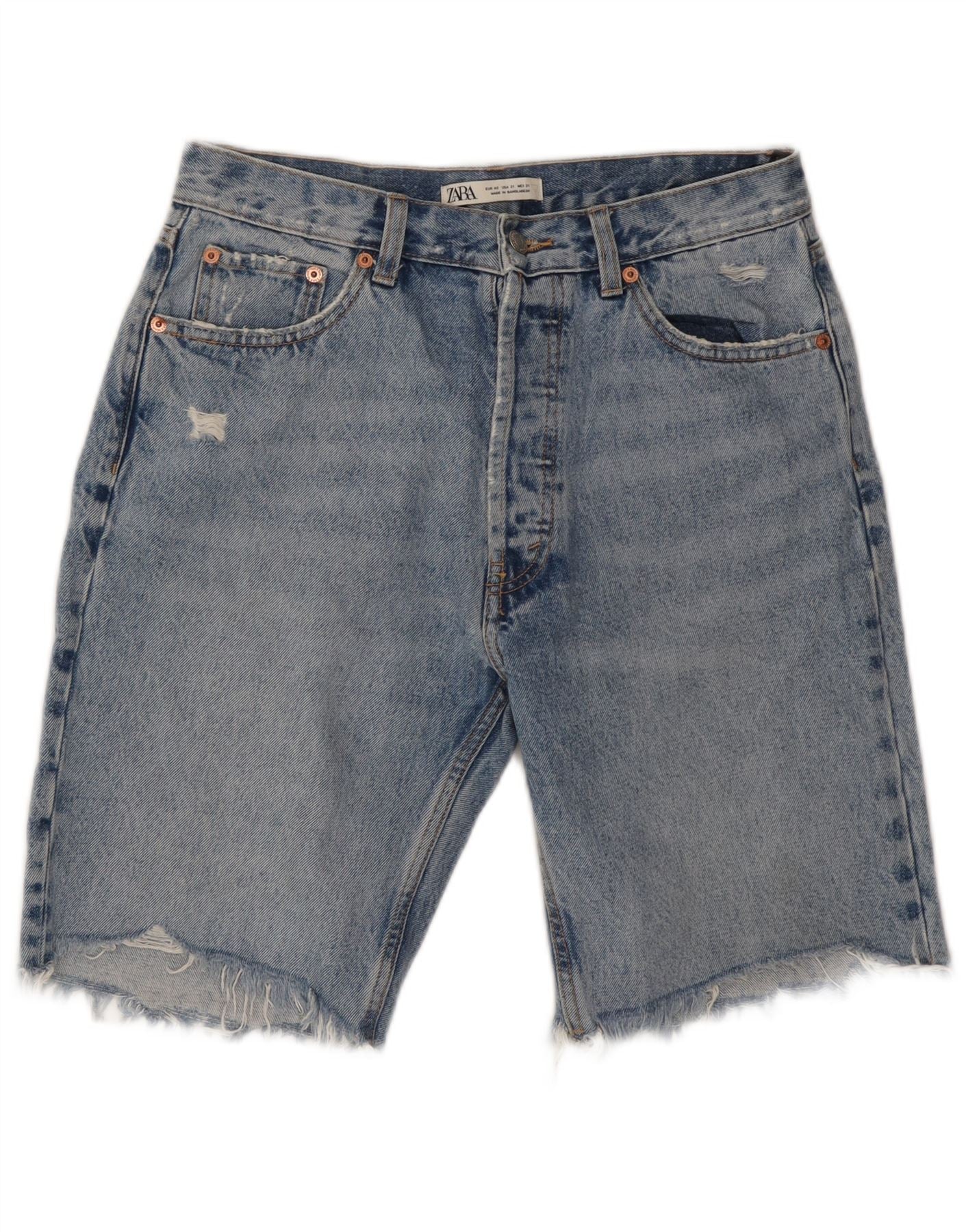 Męskie spodenki jeansowe ZARA w trudnej sytuacji W31 Średnioniebieskie, bawełniane