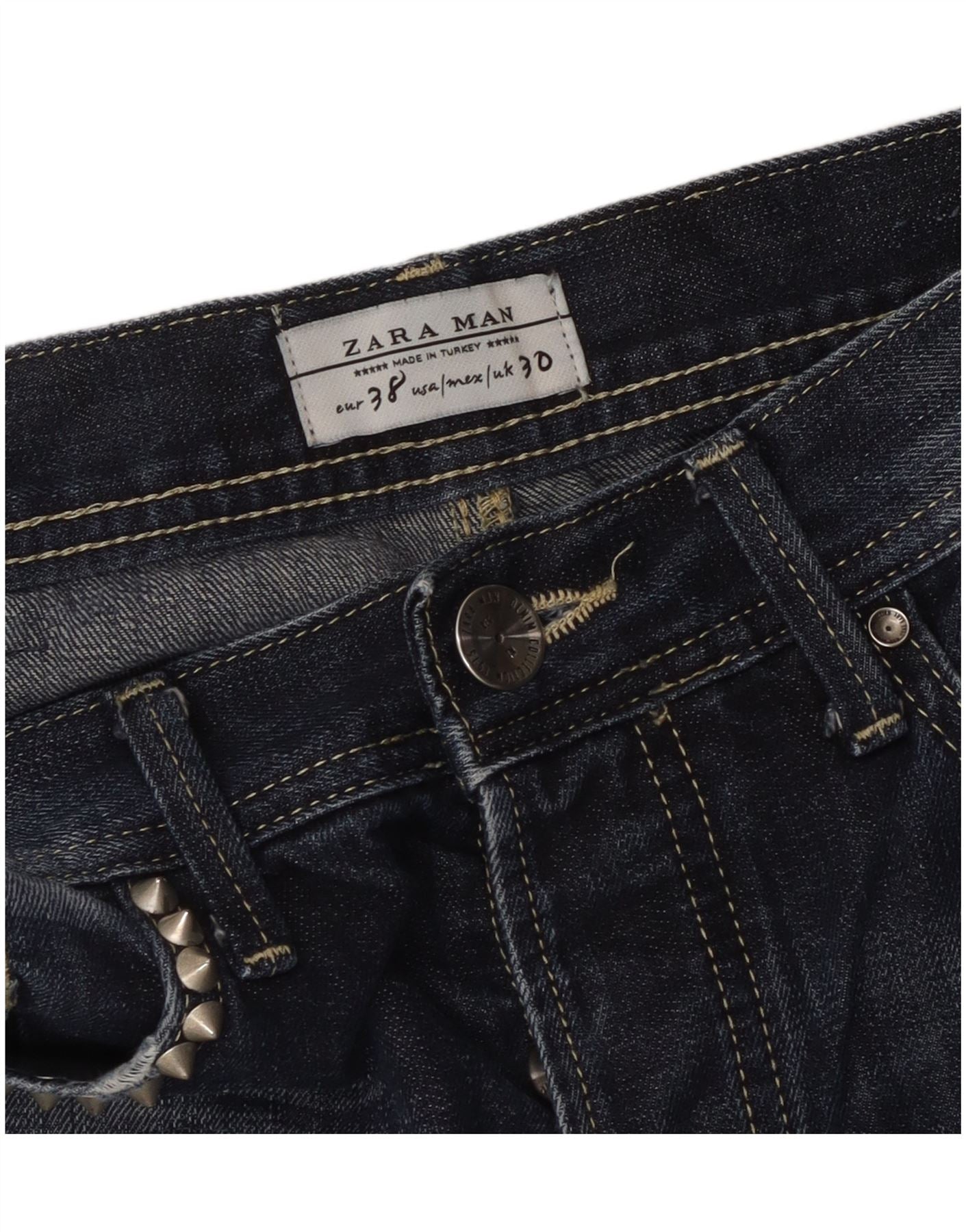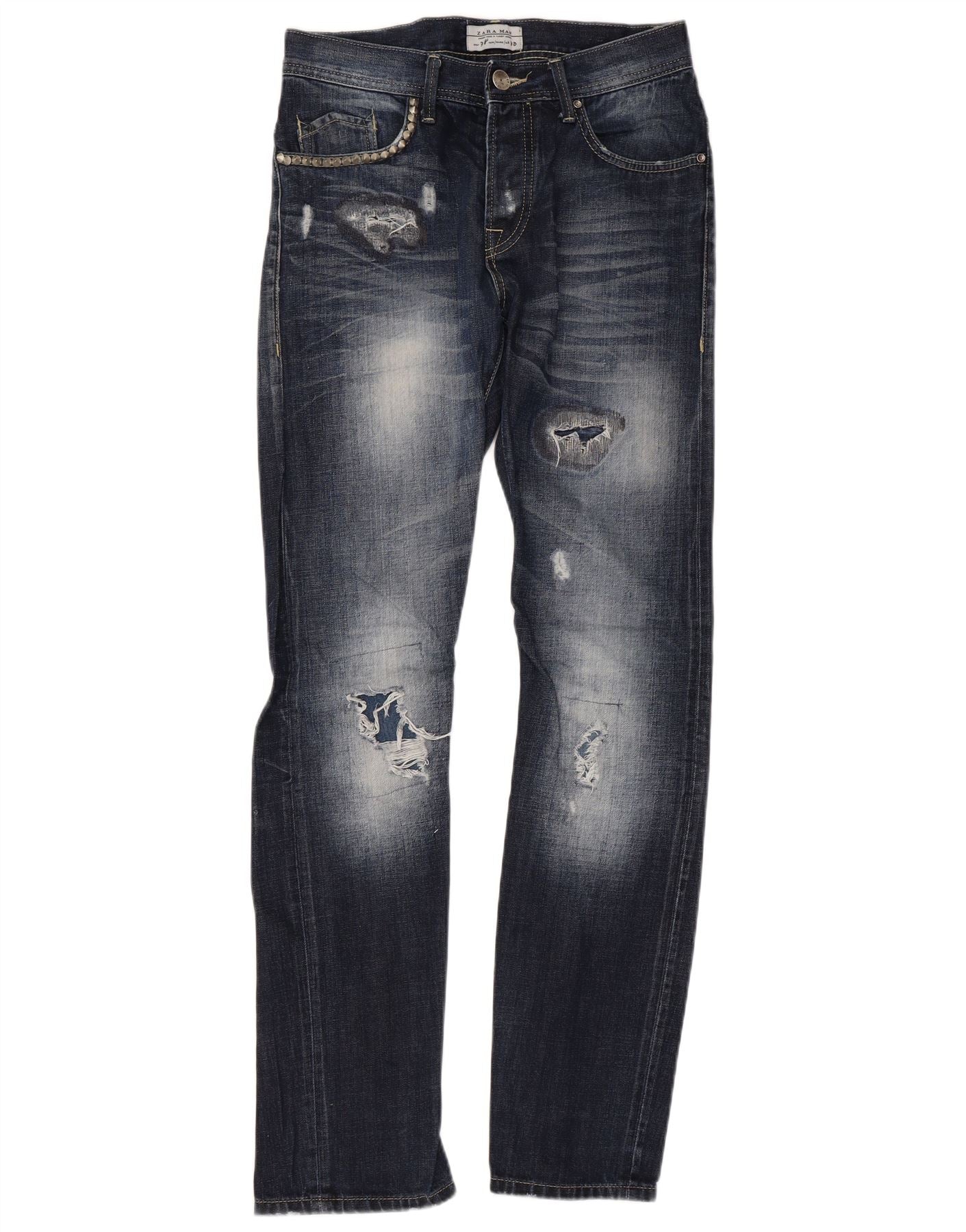 Męskie jeansy ZARA w trudnej sytuacji EU 38 Small W30 L33 Granatowe