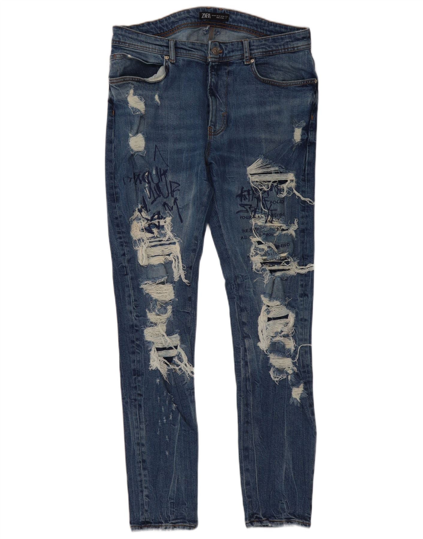 Męskie jeansy ZARA z grafiką w trudnej sytuacji, EU 44, duże, W34, L30, niebieskie
