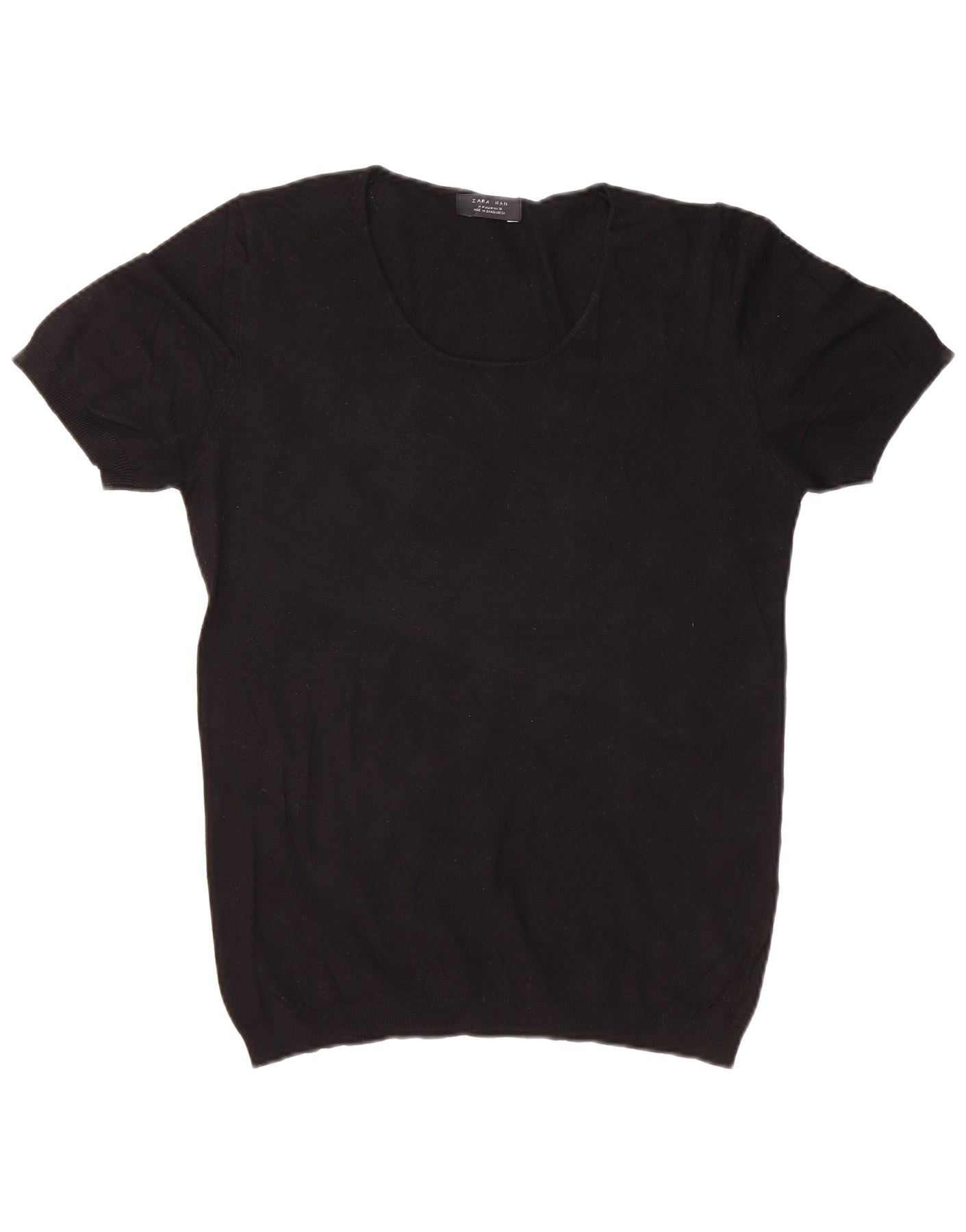Męski sweter ZARA z krótkim rękawem i dekoltem w łódkę, średni czarny