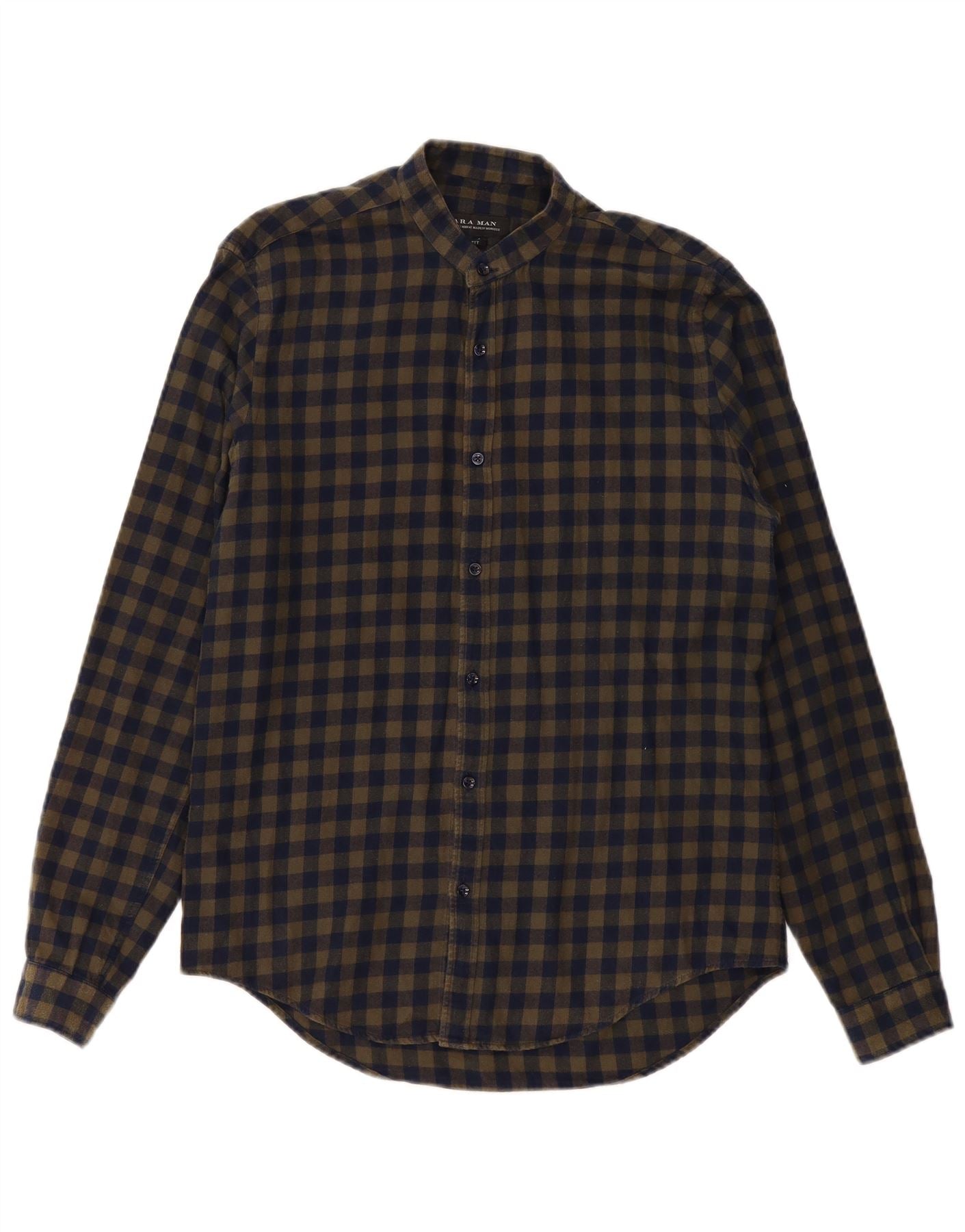 Męska koszula flanelowa ZARA slim fit, średnia khaki w kratkę