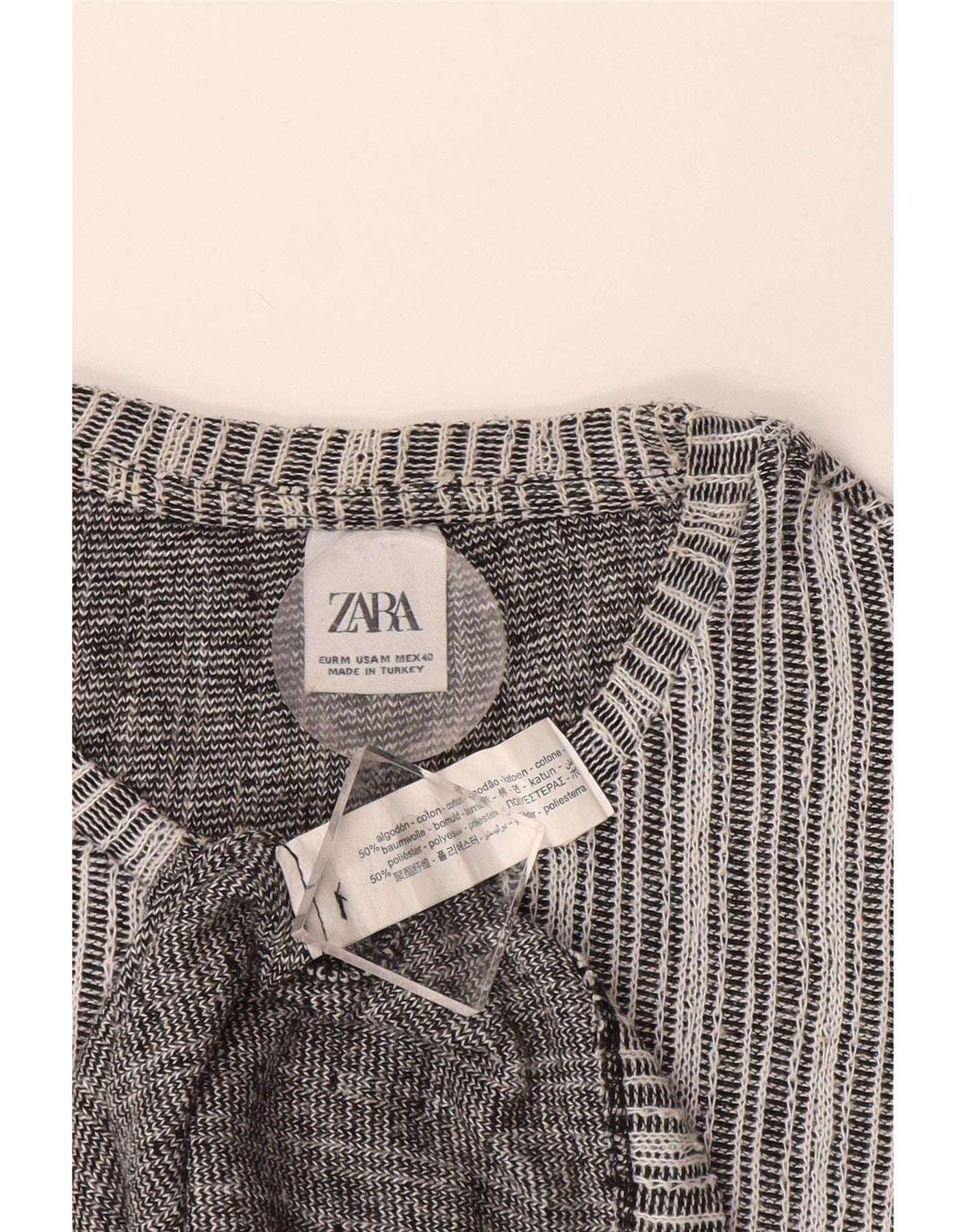 - Opis sztucznej inteligencji: Ta męska koszulka Zara jest wykonana z wygodnej tkaniny z domieszką bawełny i poliestru. Ma klasyczny okrągły dekolt i krótkie rękawy do noszenia na co dzień. Regularny krój zapewnia zrelaksowaną sylwetkę. Charakterystyczny wzór w paski w czerni i bieli dodaje nowoczesnego zainteresowania wizualnego. Ten pulowerowy top zapewnia wygodę i oddychalność, idealny do współczesnego, swobodnego wyglądu.