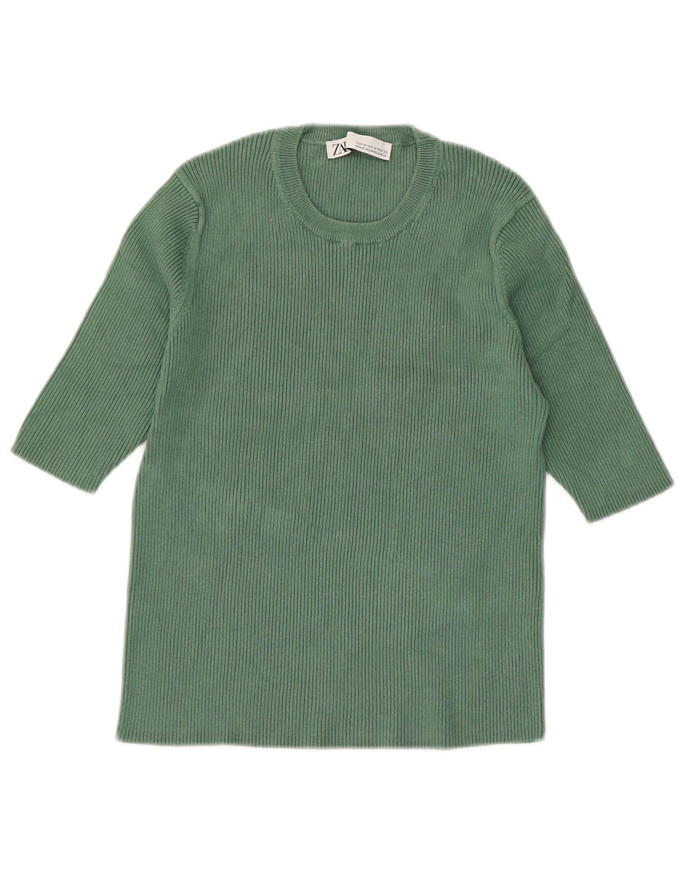 Home > Damskie > Odzież Depopa > Damski sweter Zara z okrągłym dekoltem i krótkim rękawem 1/2 UK 14, średni zielony wiskoza