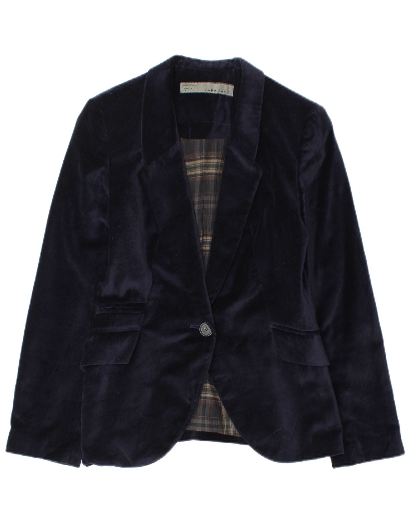 Home > Damskie > Odzież Depopa > Zara Damska marynarka zapinana na 1 guzik, aksamitna UK 8, mała, granatowa, bawełniana