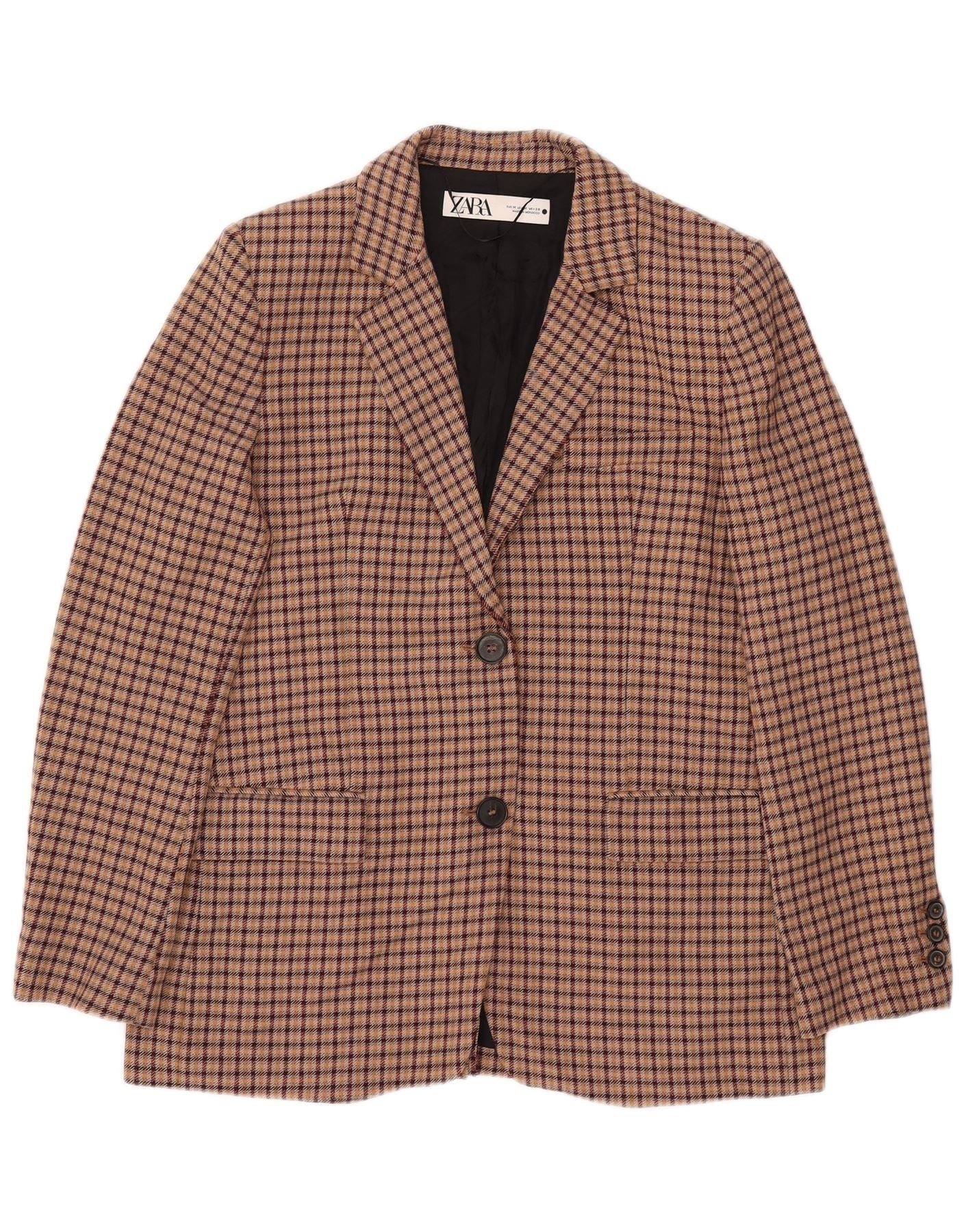 Damska marynarka ZARA zapinana na 2 guziki UK 14 Średni brąz w wiskozę w kratę