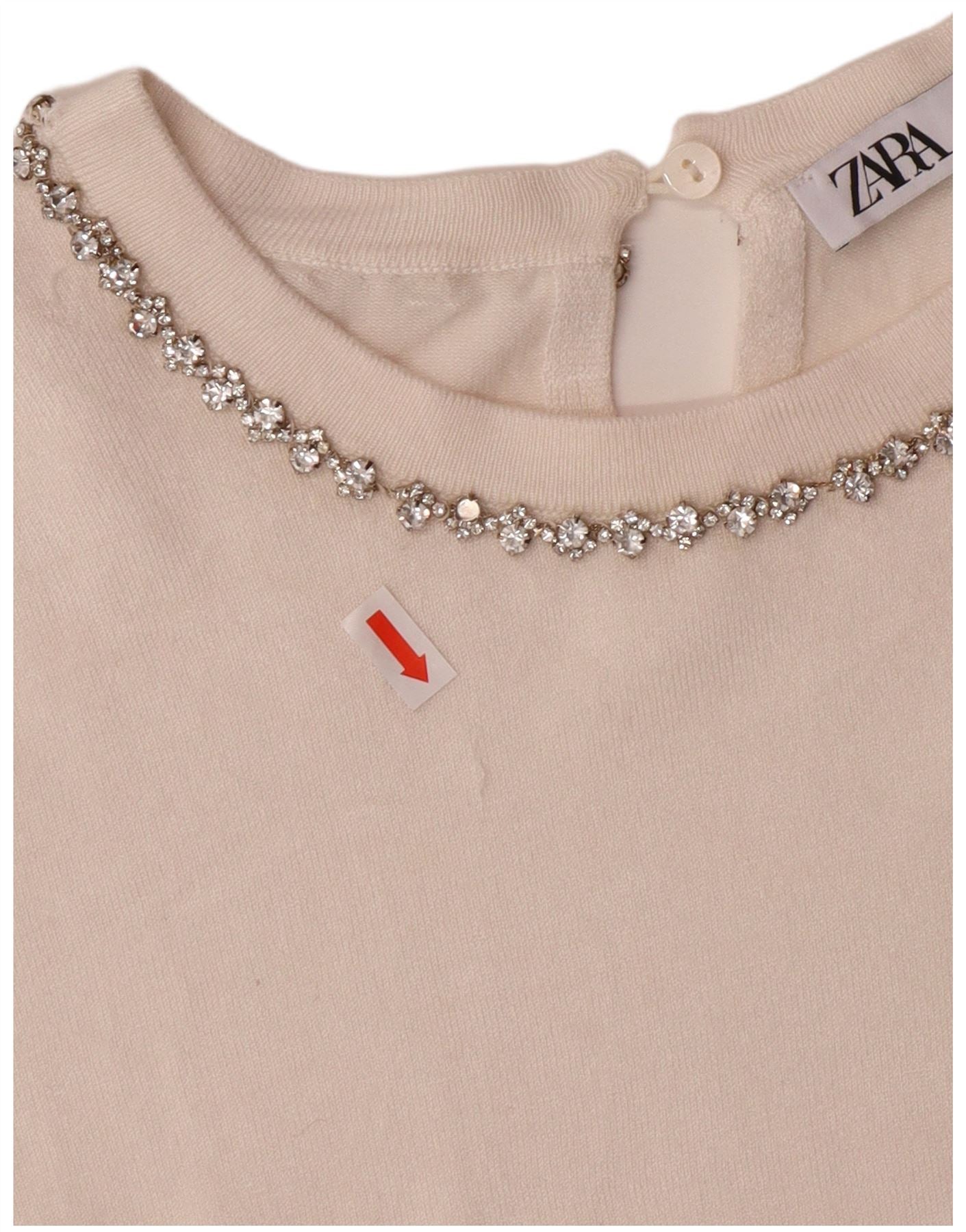 - Opis sztucznej inteligencji: Ten damski sweter Zara z dzianiny w kolorze złamanej bieli jest wykonany z mieszanki wiskozy. Okrągły dekolt i długie rękawy nadają klasycznej sylwetce. Regularny krój zapewnia wygodę noszenia. Styl pulowerowy ułatwia noszenie. Ozdobne kryształki wokół dekoltu dodają subtelnego blasku. Uniwersalny element do nakładania warstw lub noszenia samodzielnie.