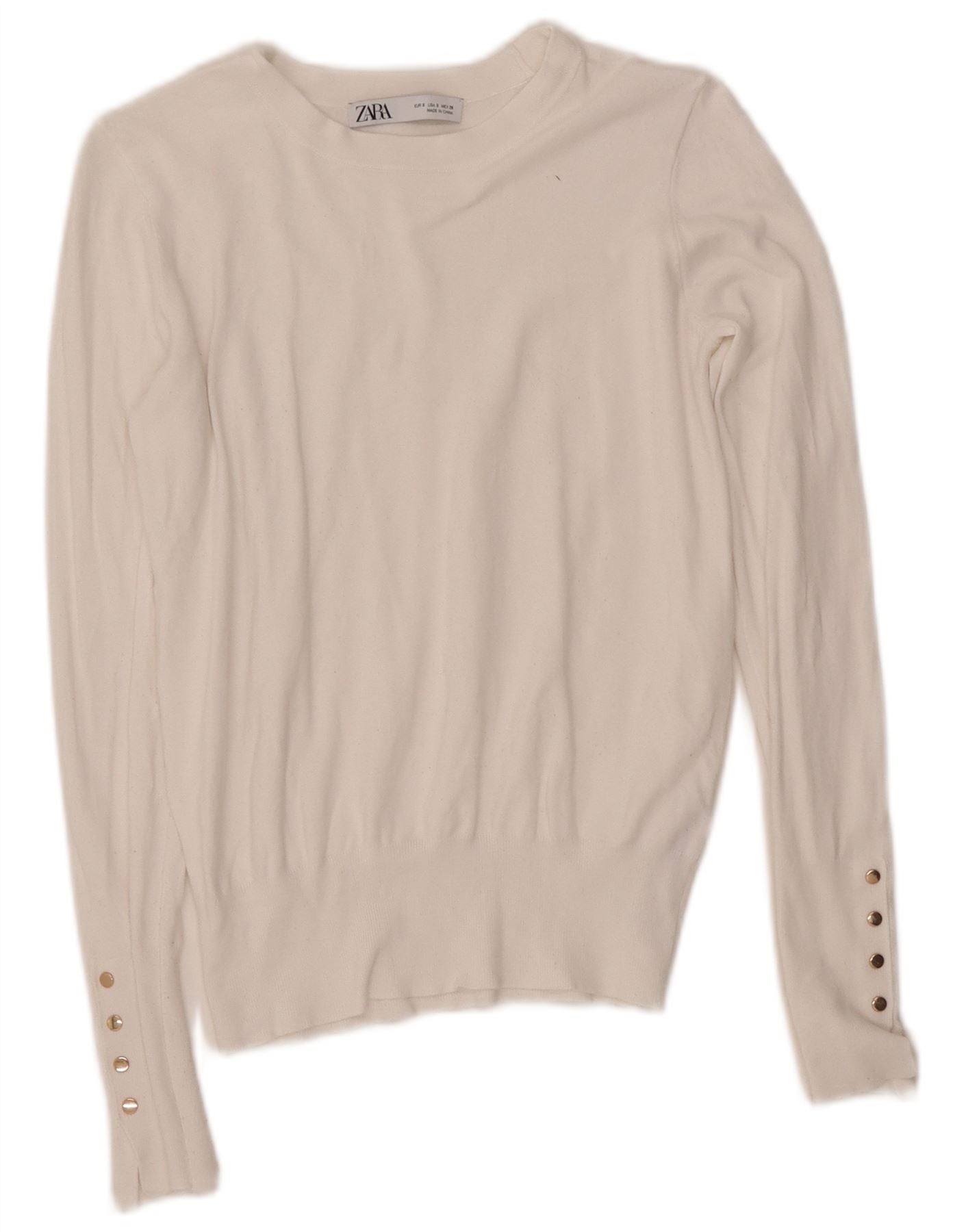Damski sweter ZARA z dekoltem w łódkę UK 10 Small White Wiskoza