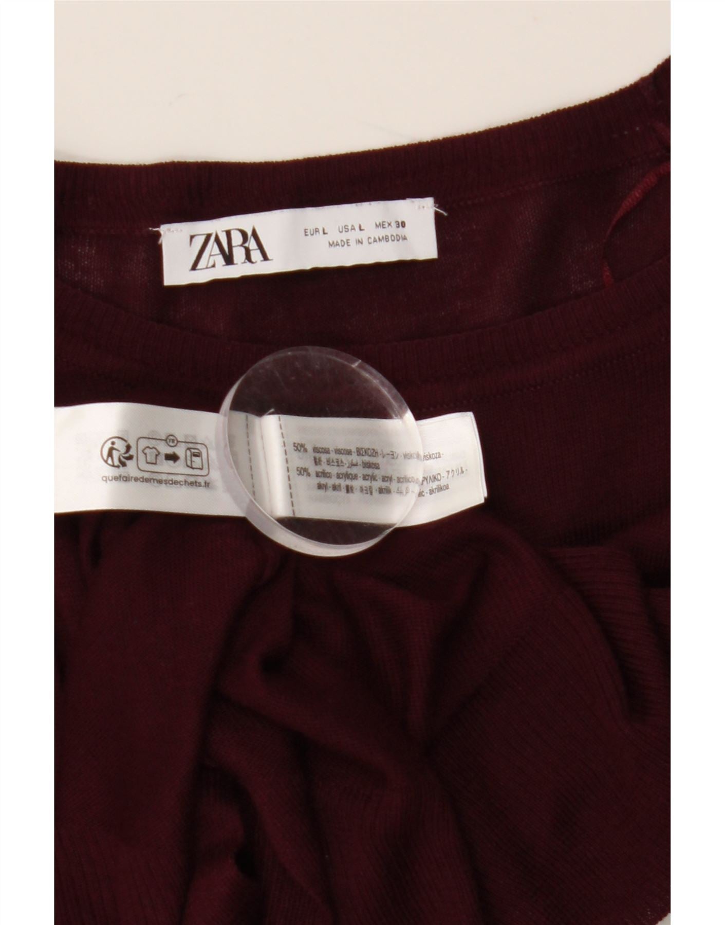 Damski sweter ZARA z dekoltem w łódkę UK 16, duża, bordowa wiskoza