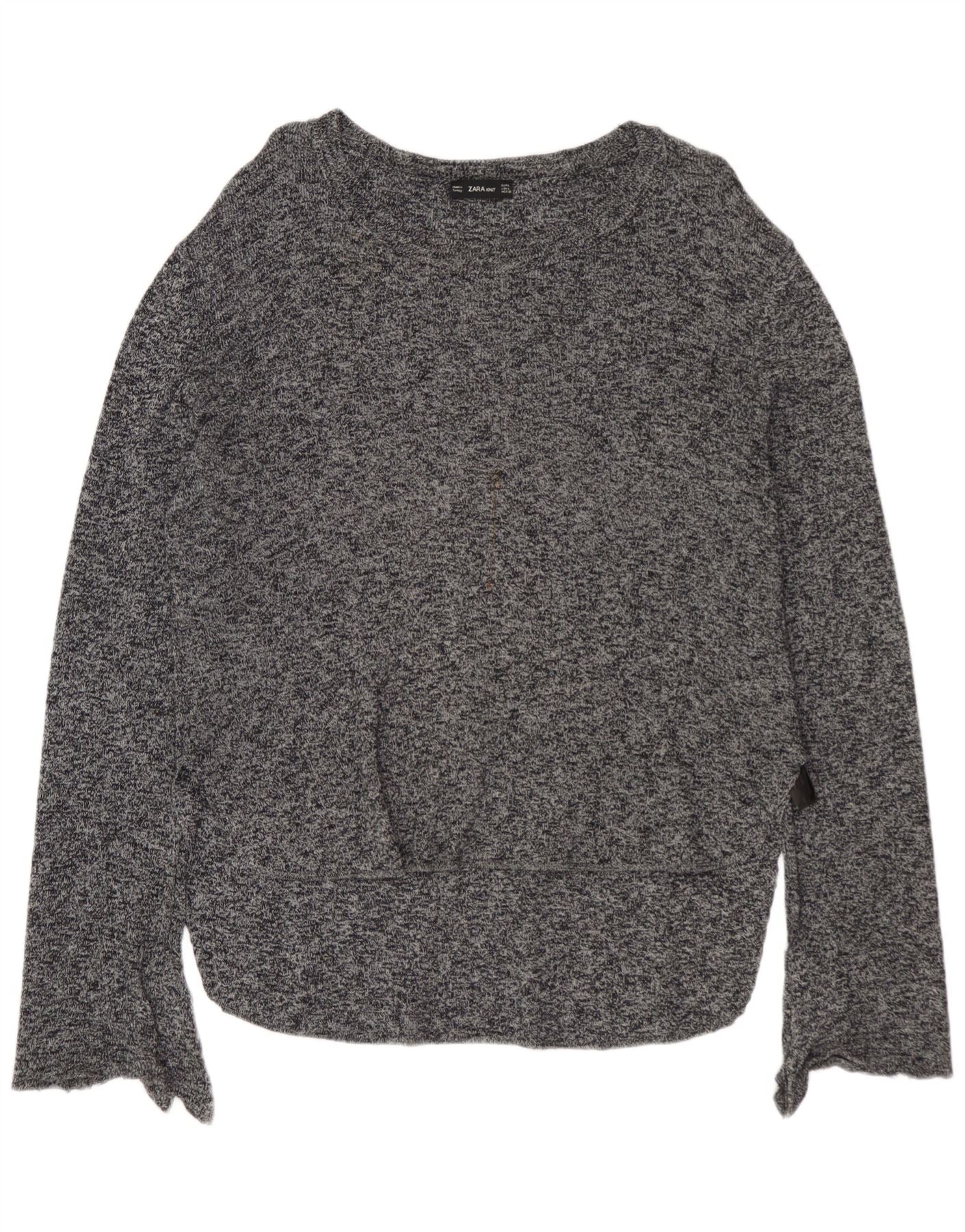Home > Damskie > Odzież Depopa > Damski sweter ZARA z dekoltem w łódkę UK 16, duży, szary, bawełniany w cętki