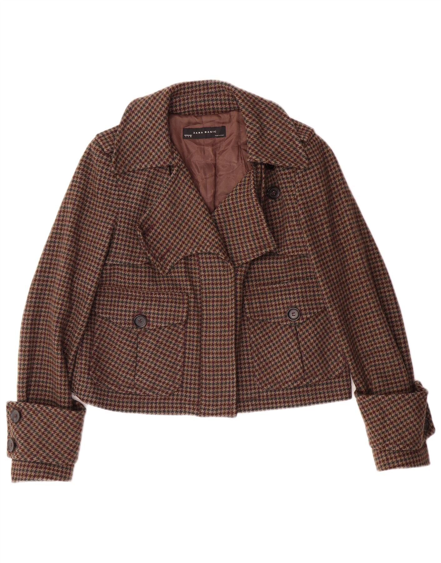 Damska kurtka bomberka ZARA UK 8, mała, brązowa, wełniana pepitka