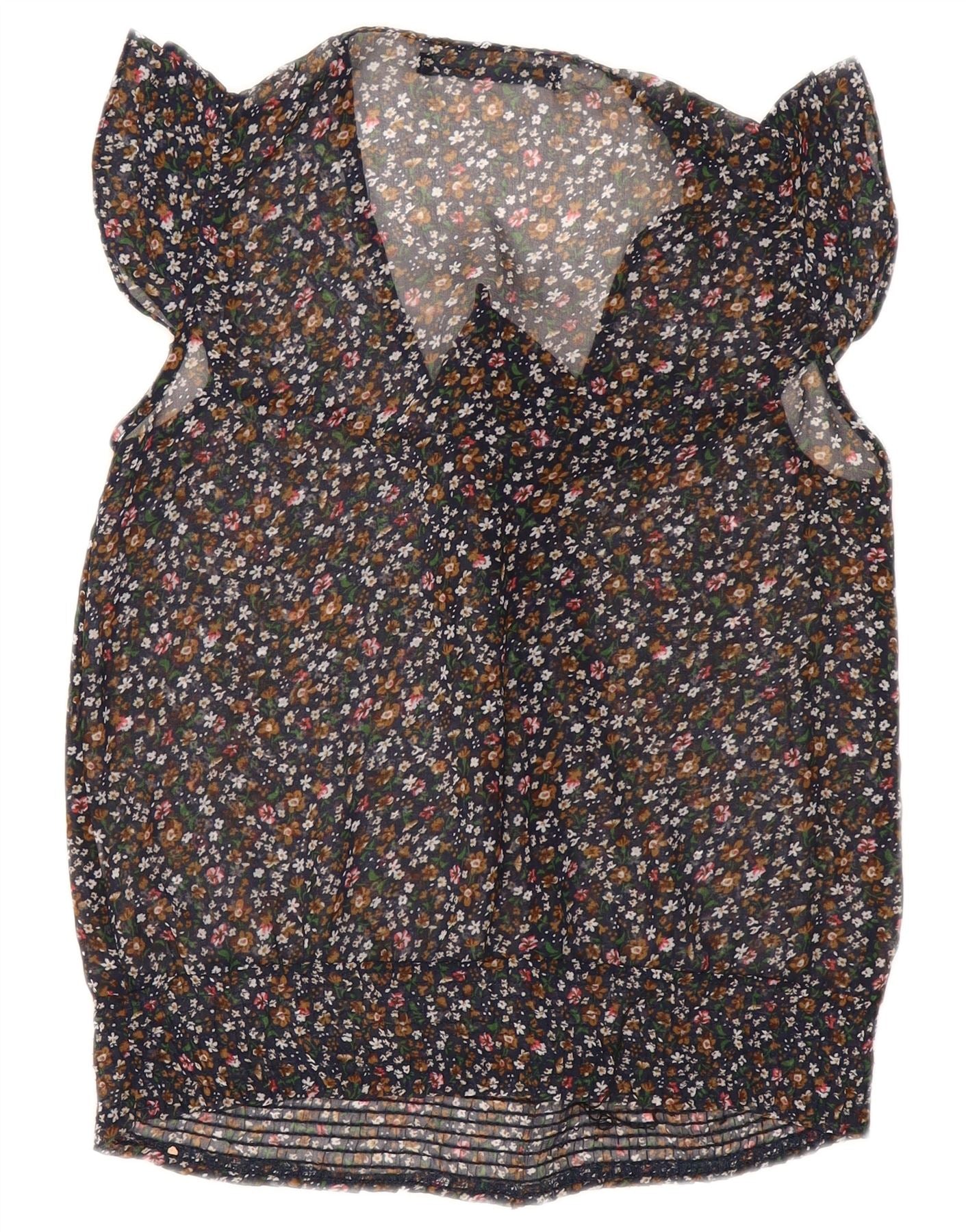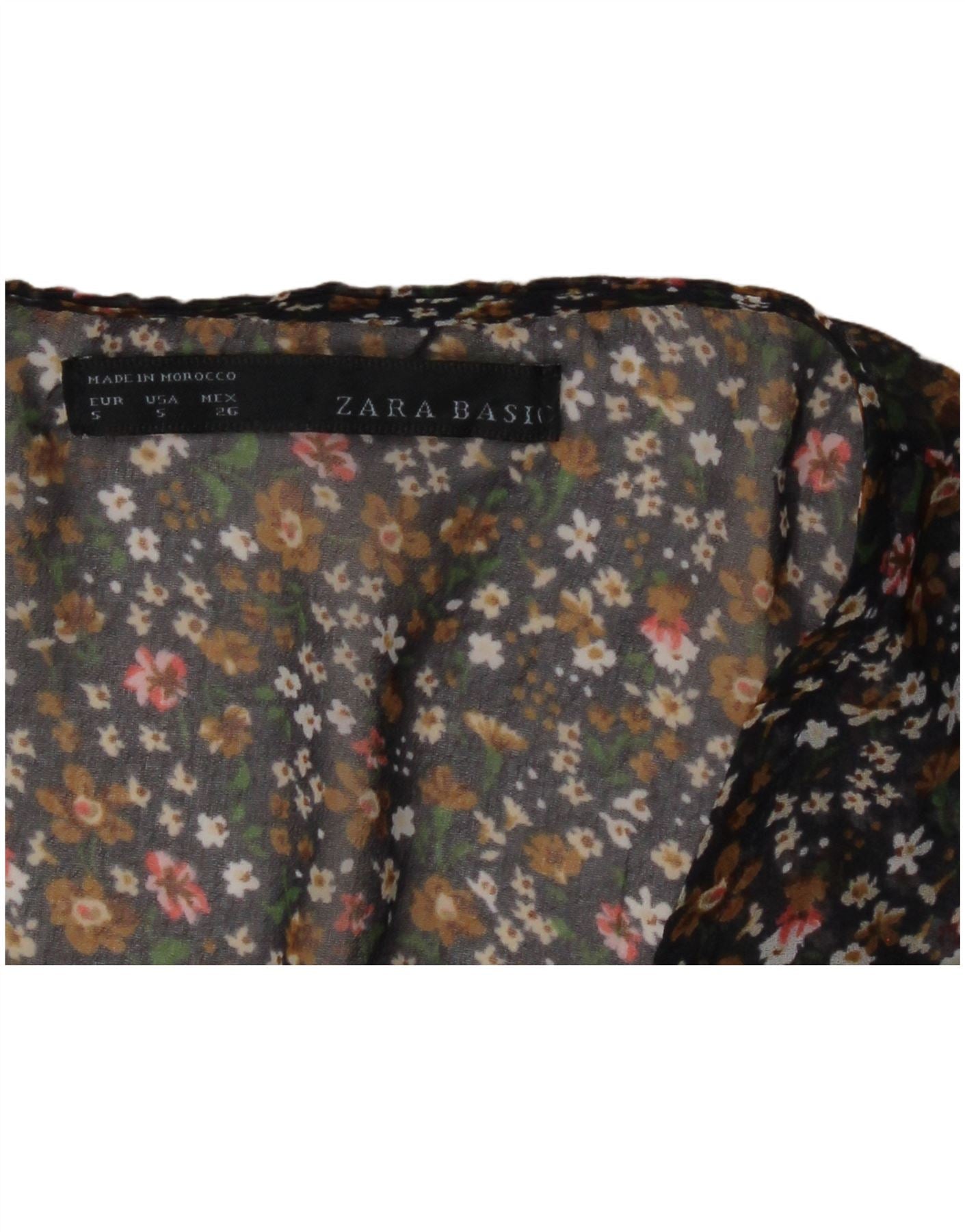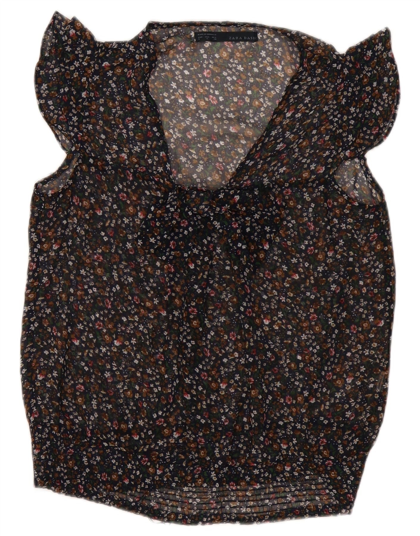 Damska muszka ZARA bez rękawów prześwitująca koszulka UK 10 w małe czarne kwiatowe wzory