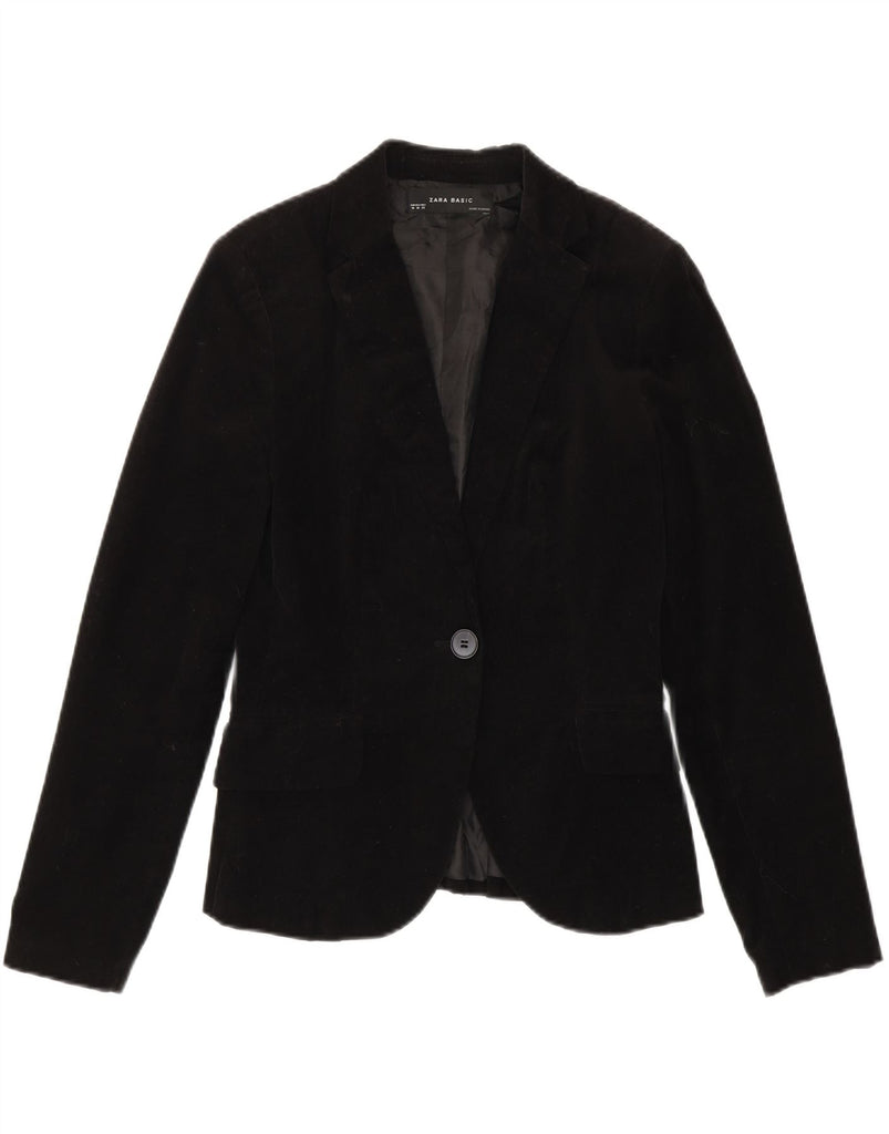 ZARA Womens Corduroy 1 Button Blazer Jacket UK 12 Medium Black Cotton