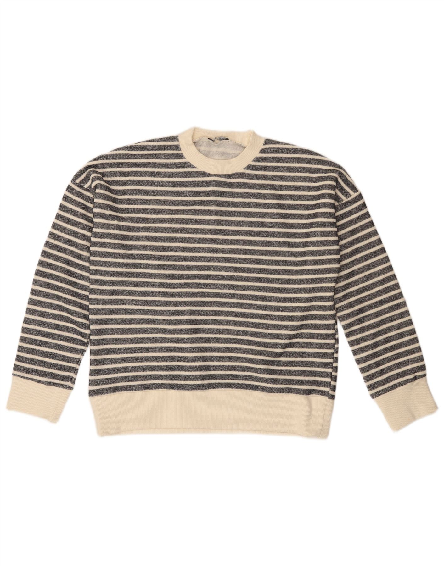 Damski sweter ZARA z okrągłym dekoltem UK 14, poliester w średnie czarne paski