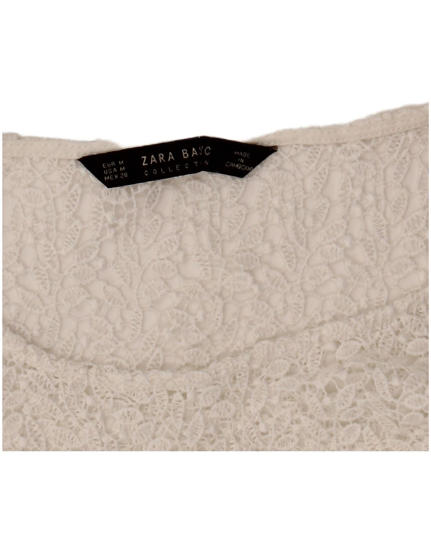 Damska krótka bluzka ZARA UK 12, średnia, biała w kwiaty