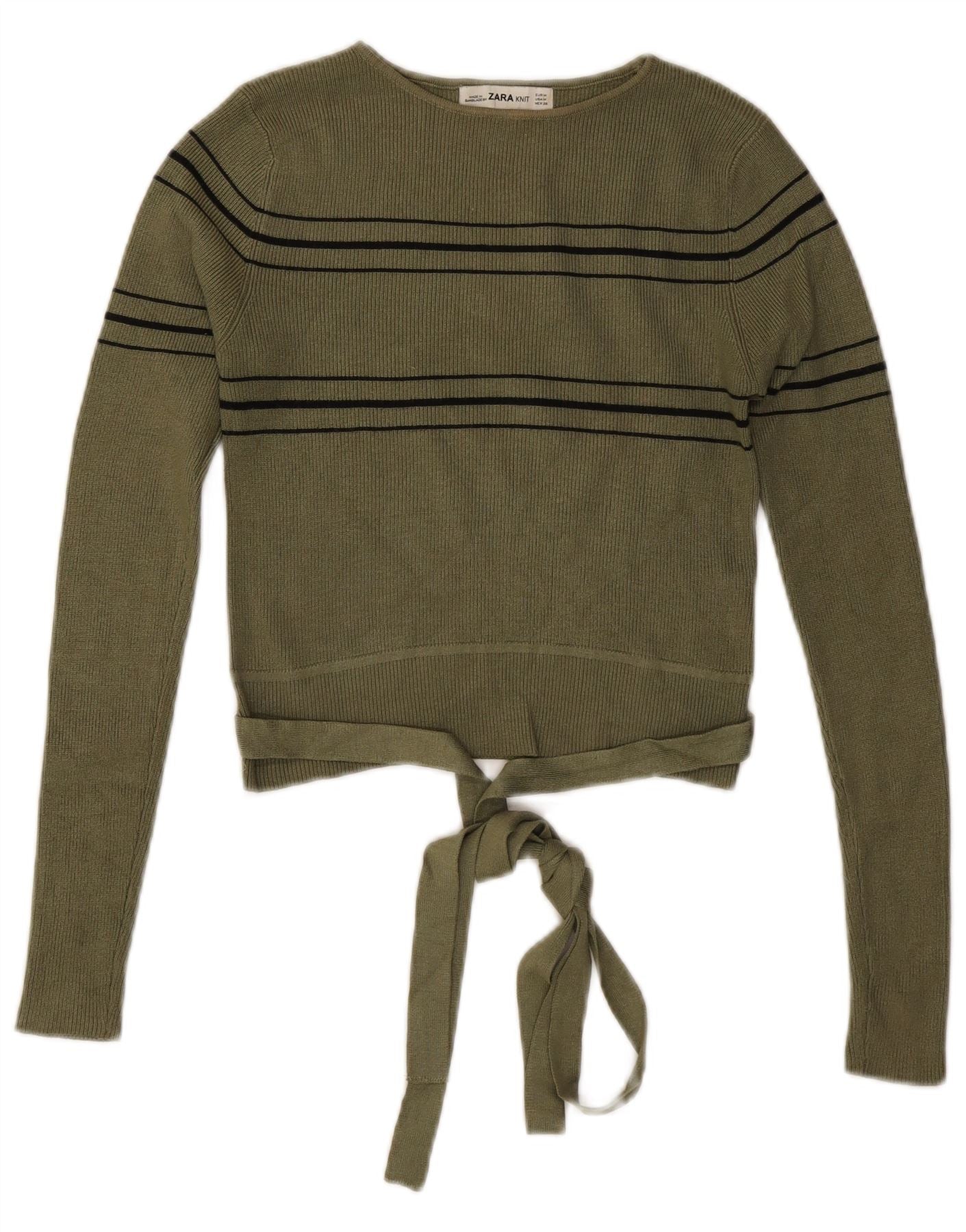 Home > Damskie > Odzież Depopa > Damski sweter ZARA z dekoltem w łódkę, UK 12, średnie khaki w paski