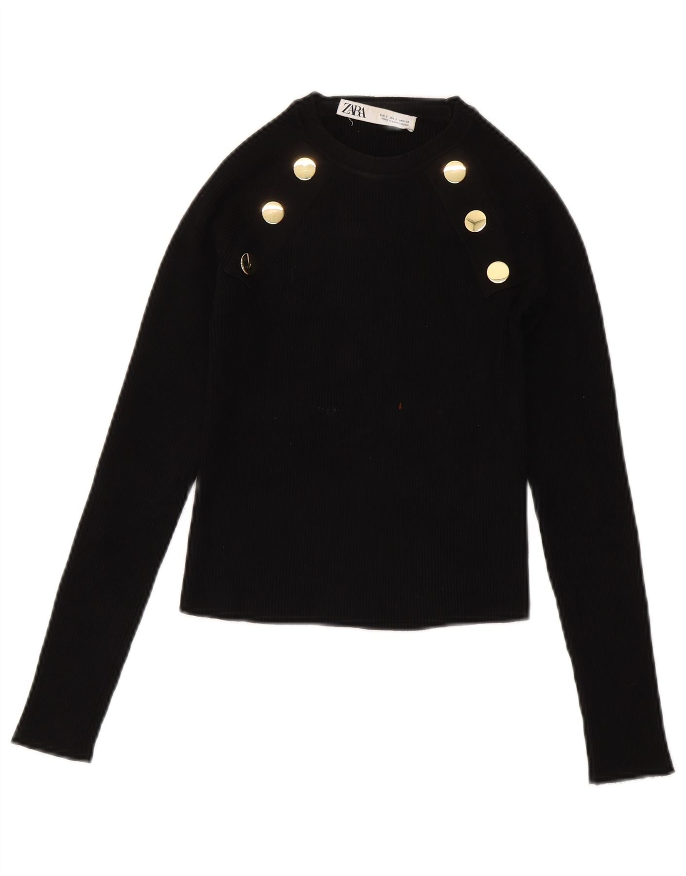 Damski sweter ZARA z dekoltem w kształcie litery V UK 12 Średni czarny sztuczny jedwab