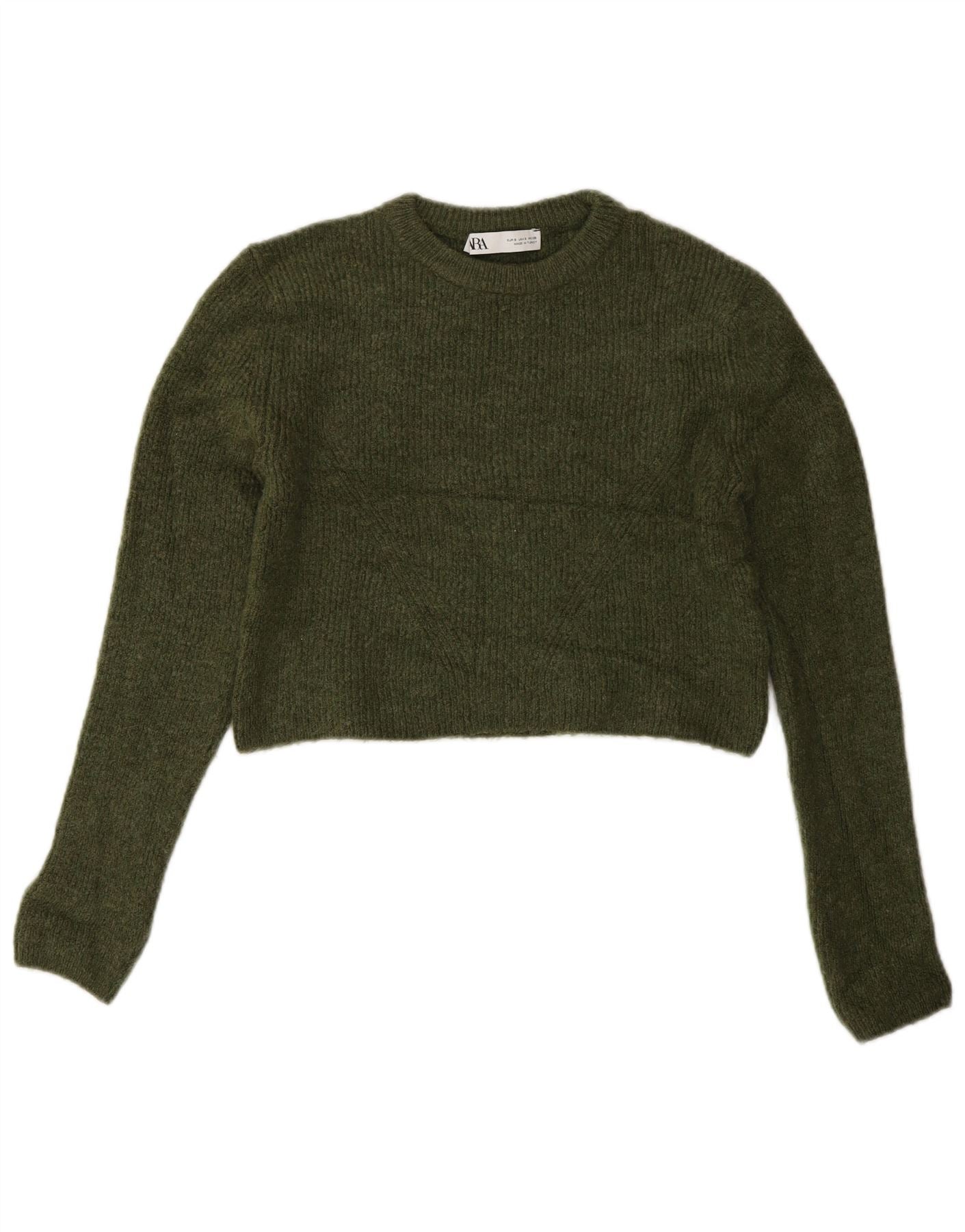Damski sweter z okrągłym dekoltem ZARA UK 8, mały, zielony akryl