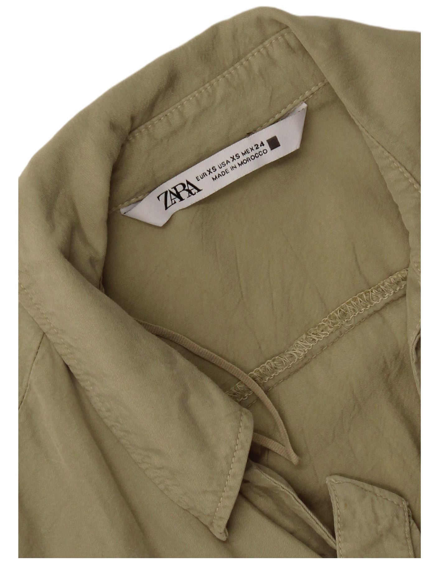 Home > Damskie > Odzież Depopa > Damska bluzka koszulowa oversize z krótkim przodem i wiązaniem z przodu Zara UK 6 XS Khaki