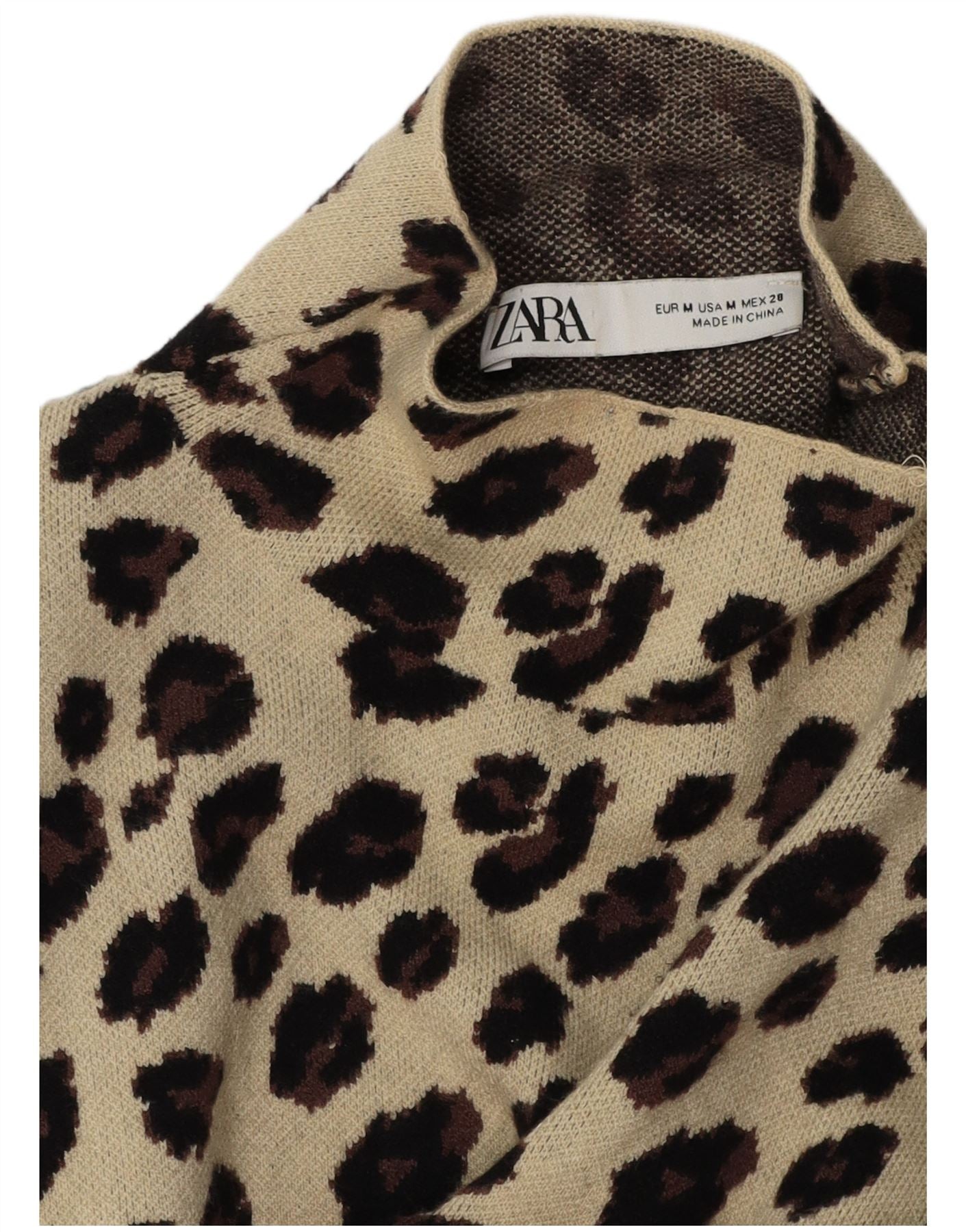 Damska bluzka z długim rękawem Zara, UK 12, średni beżowy nadruk zwierzęcy