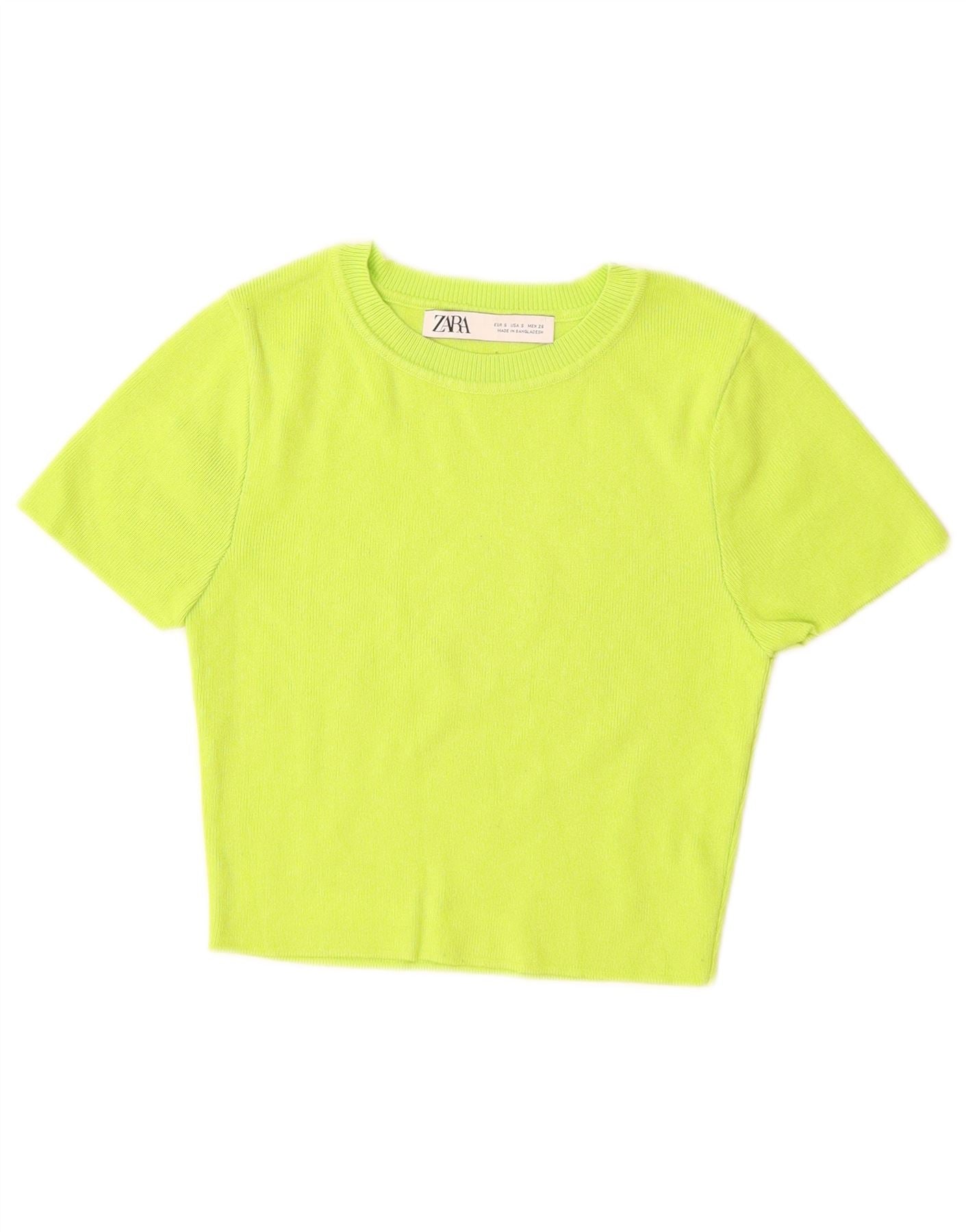 Damski sweter ZARA Crop z krótkim rękawem i dekoltem w łódkę UK 8 Small Green
