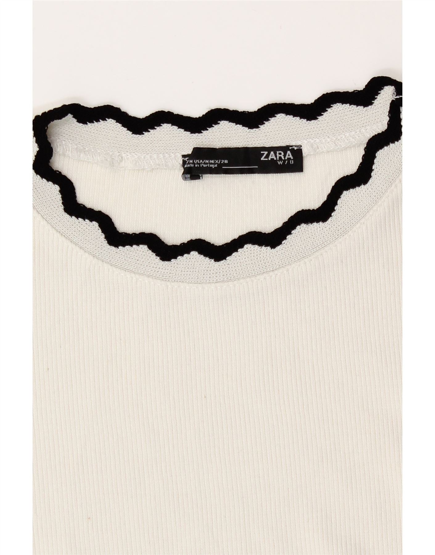 - Opis sztucznej inteligencji: Damski T-shirt Zara jest wykonany z wygodnej, elastycznej dzianiny w kolorze złamanej bieli. Ma okrągły dekolt i długie rękawy, które zapewniają smukły krój. Dekolt i mankiety ozdobione są charakterystyczną czarną lamówką. Ta bluza z kapturem oferuje nowoczesny, stylowy wygląd i dodatkowy komfort.