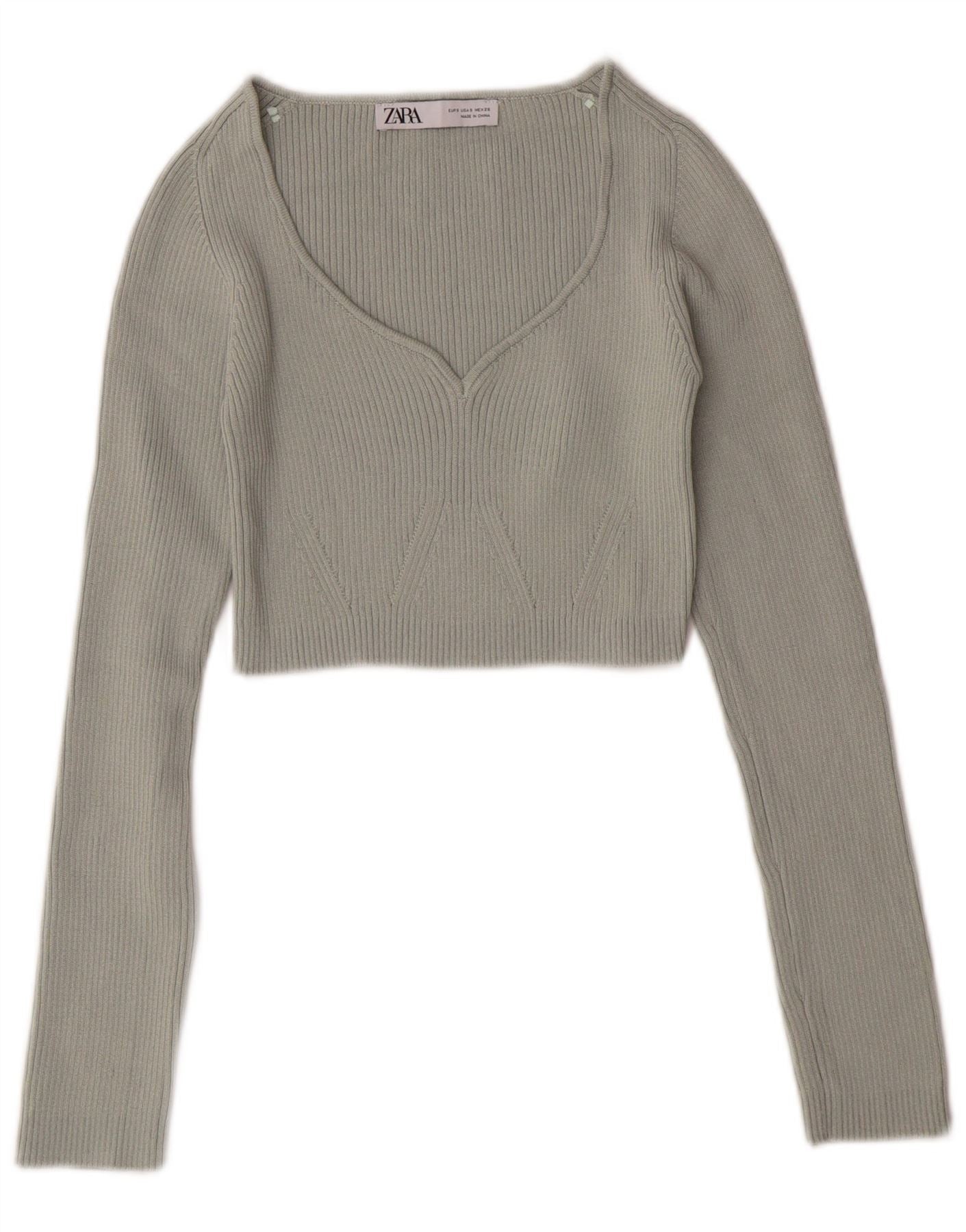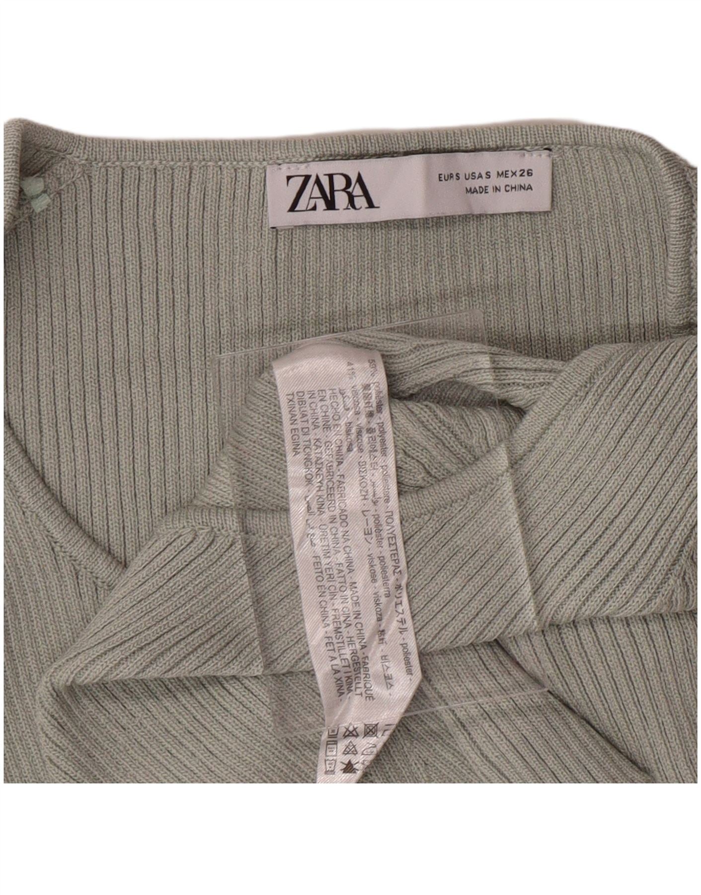 Damski sweter ZARA z dekoltem w kształcie litery V, UK 8, mały, zielony poliester