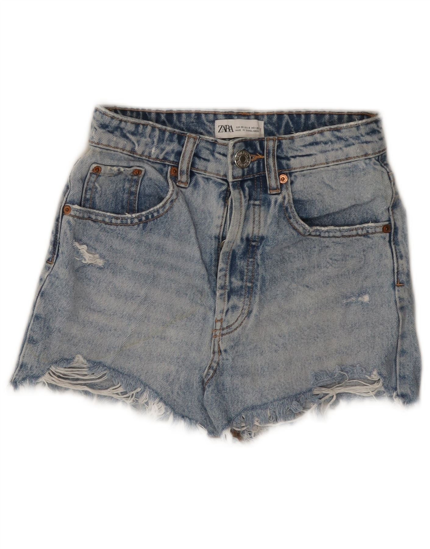 Damskie spodenki jeansowe ZARA w trudnej sytuacji US 0 XS W22 niebieskie