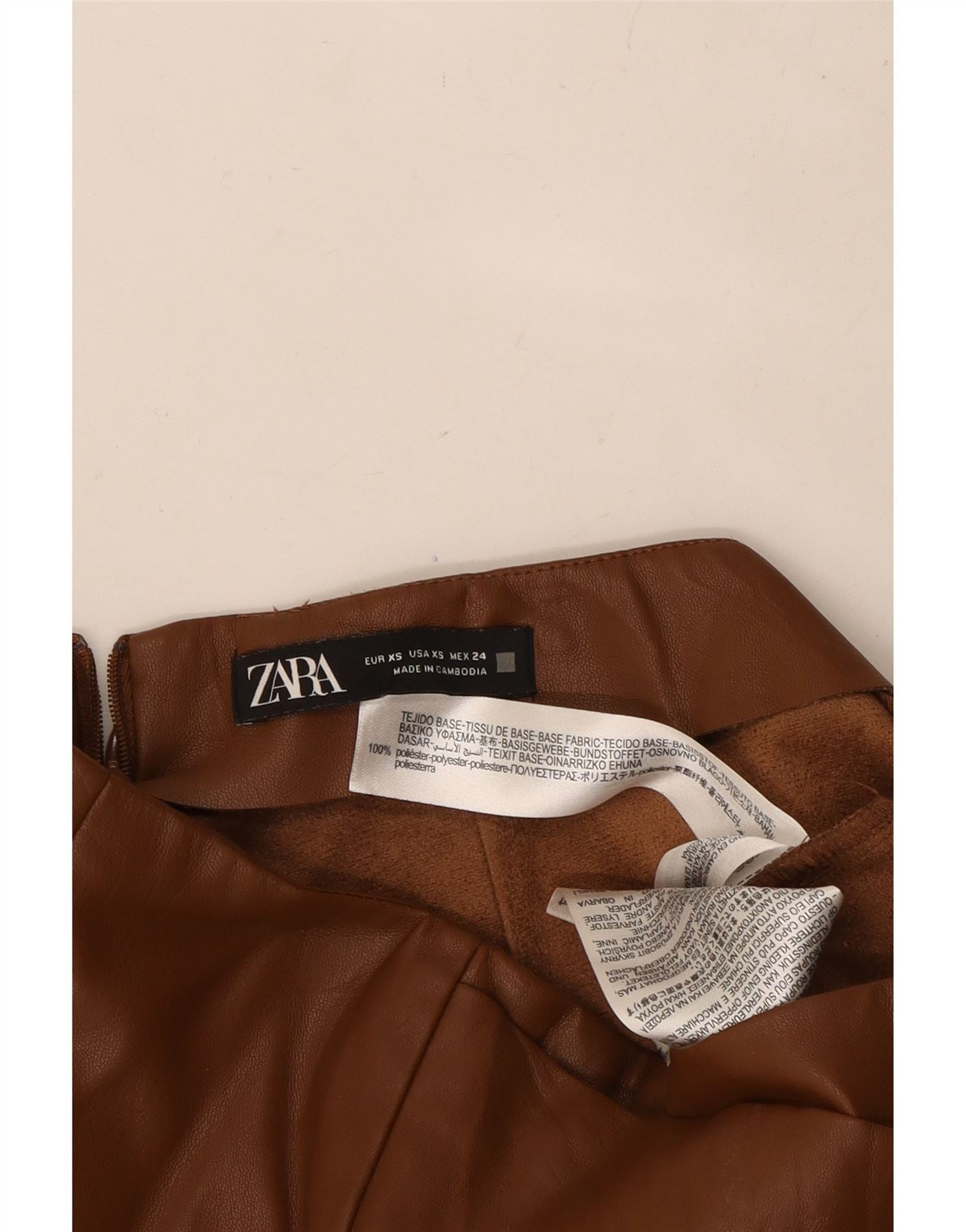 Damska, obszerna, wyściełana kamizelka z długim rękawem ZARA UK 6 XS, brązowy poliester