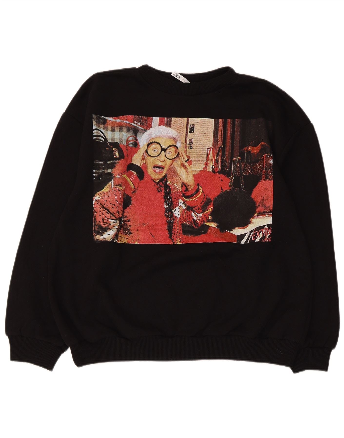 Damski sweter z grafiką ZARA UK 14, średni czarny, bawełniany