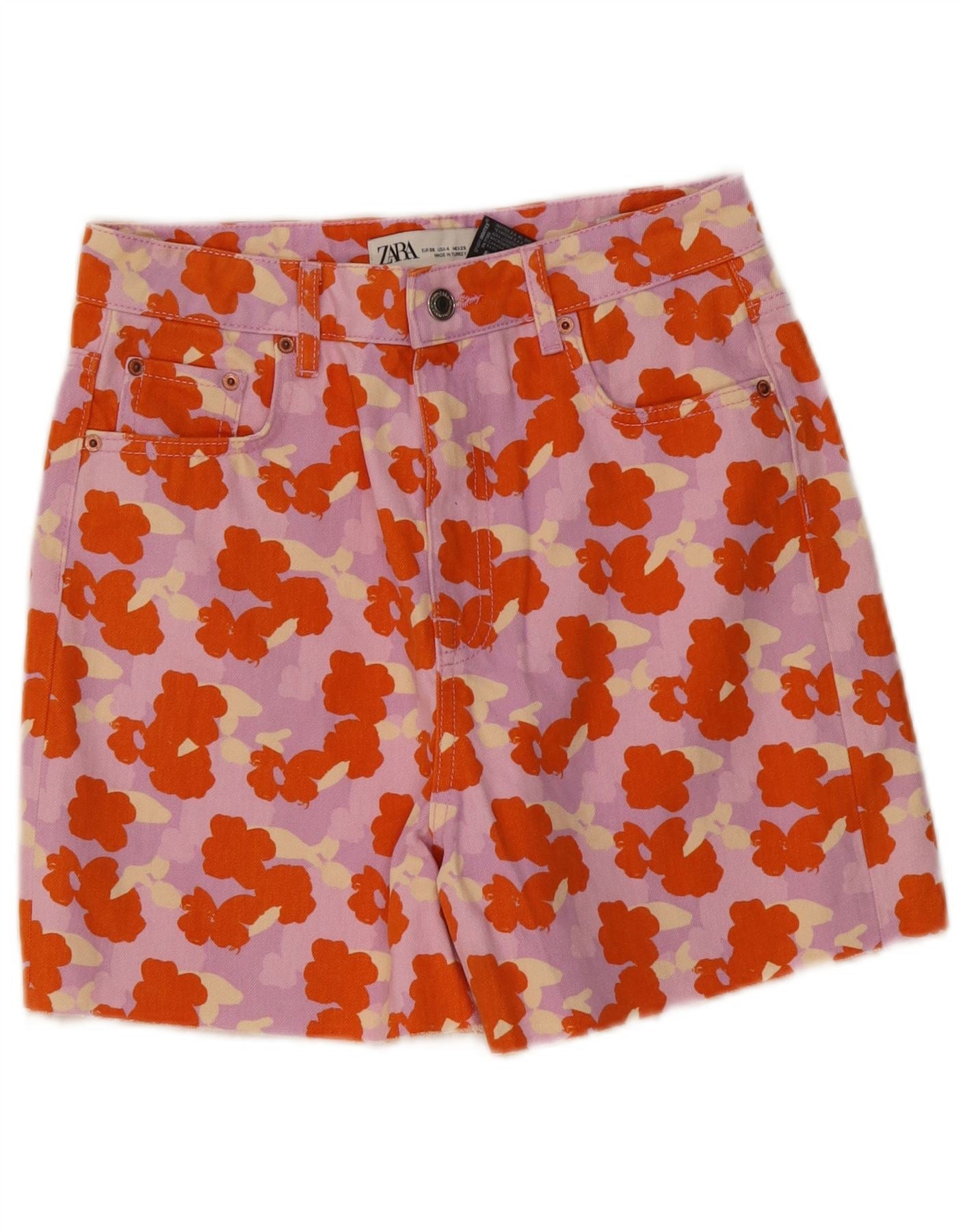 Damskie spodenki jeansowe ZARA z wysokim stanem EU 36 Small W26 wielokolorowe kwiaty